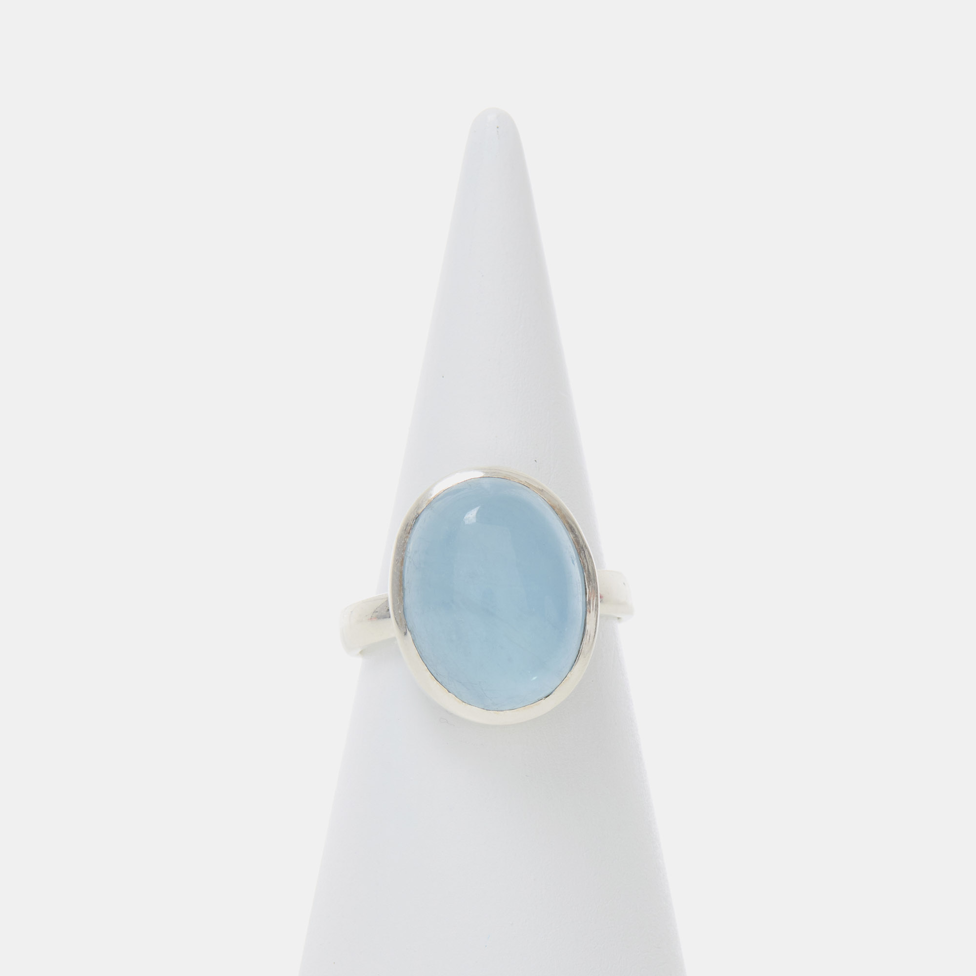 Anello in Argento 925‰, realizzato artigianalmente, con Cabochon liscio in Acquamarina.