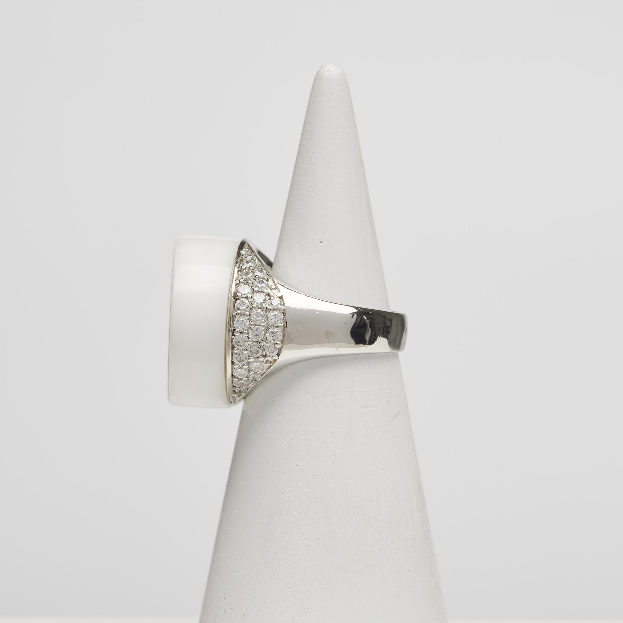 Anello in Argento 925‰ rodiato, realizzato artigianalmente, con Agata Bianca.