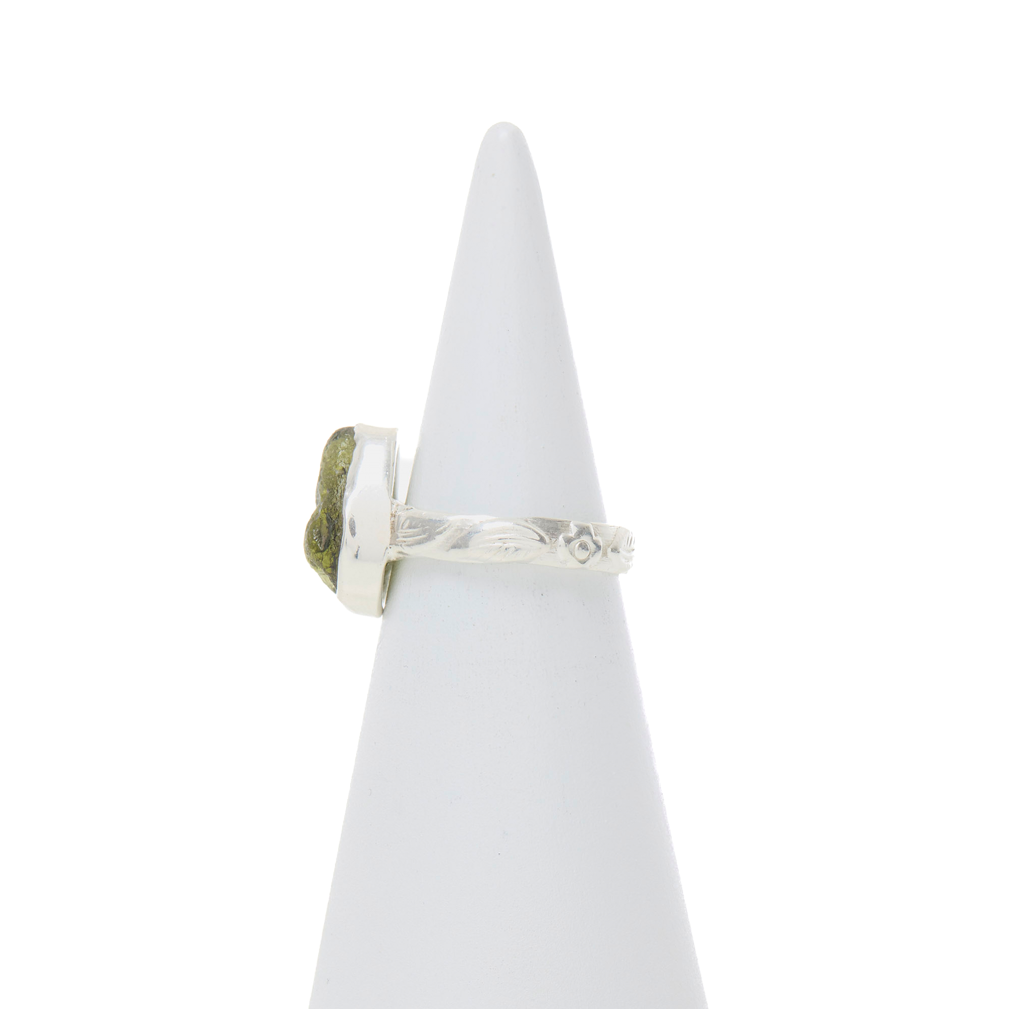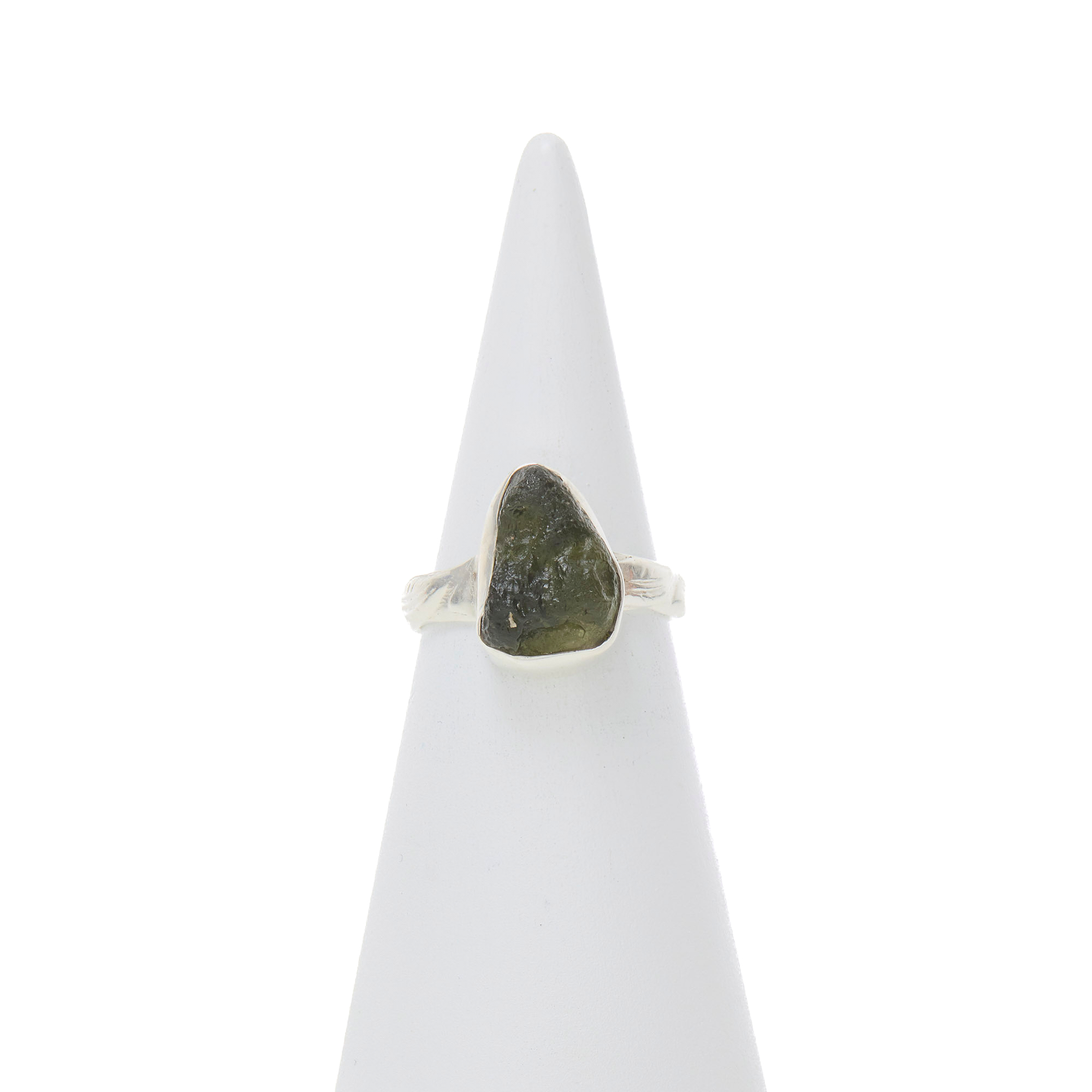 Anello in Argento 925‰, realizzato artigianalmente, con Moldavite Grezza.