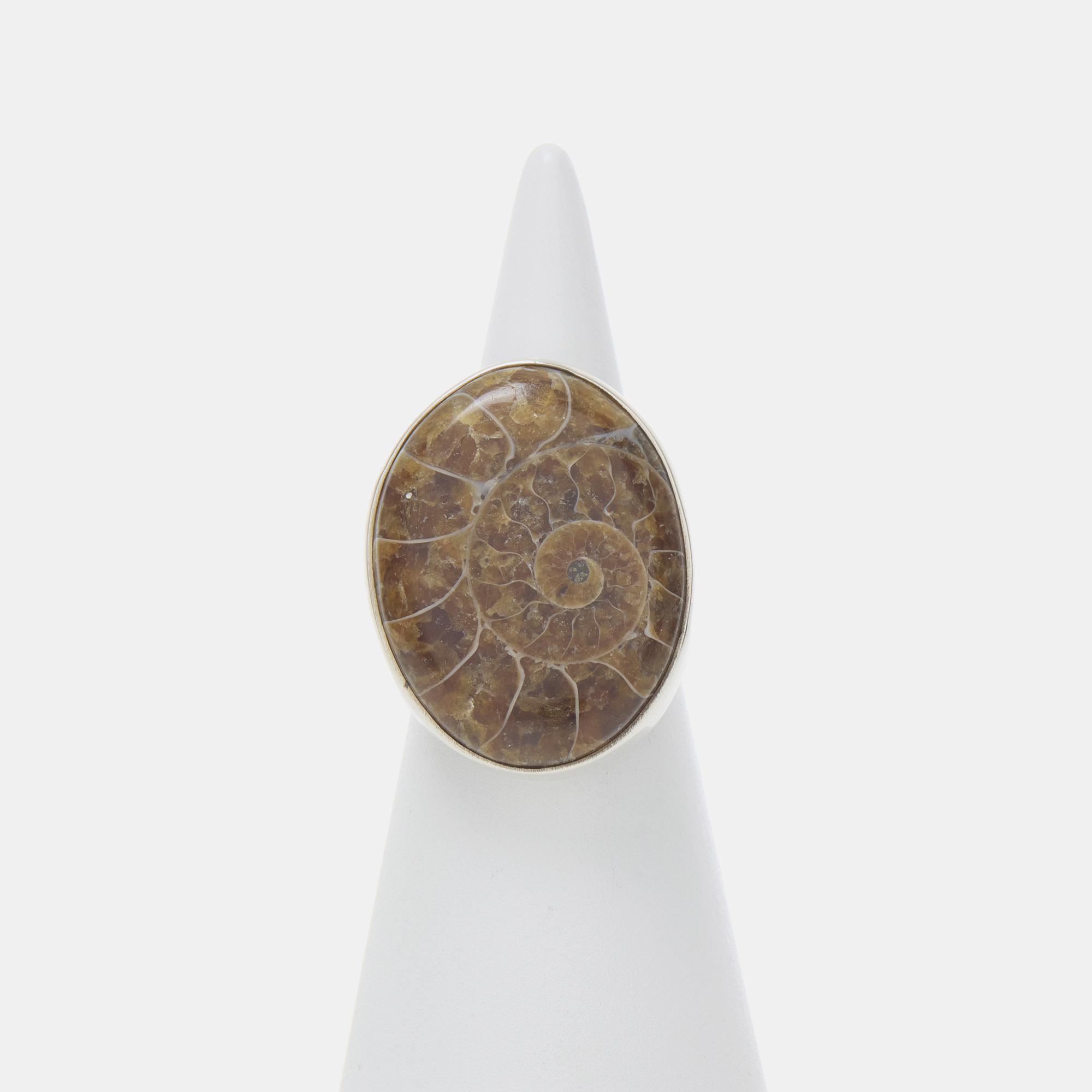 Anello in Argento 925‰, realizzato artigianalmente a con Ammonite fossile.
