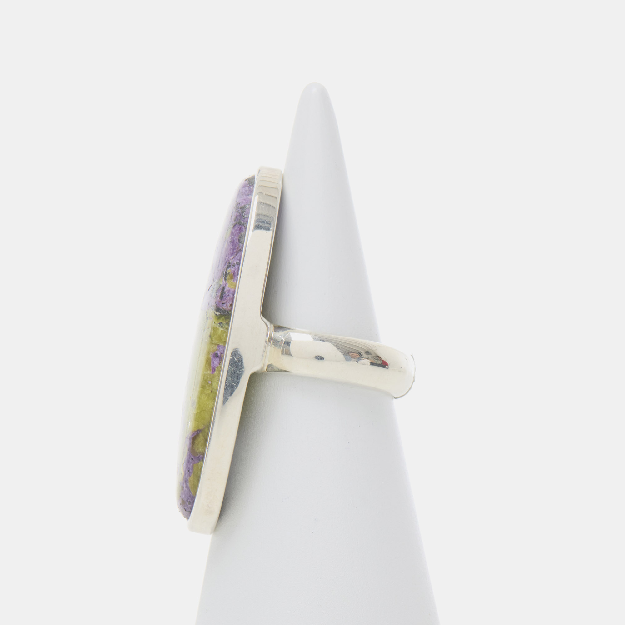 Anello in Argento 925‰ rodiato, realizzato artigianalmente, con Atlantisite.