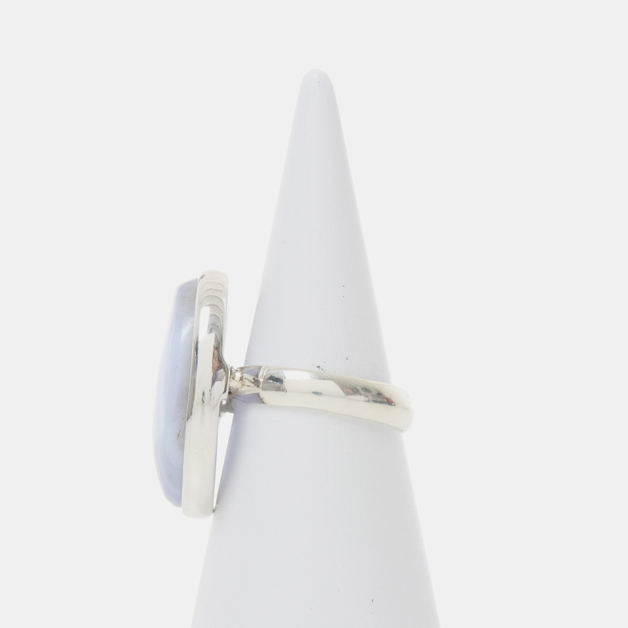 Anello in Argento 925‰, realizzato artigianalmente, con Calcedonio a cabochon liscio ovale.