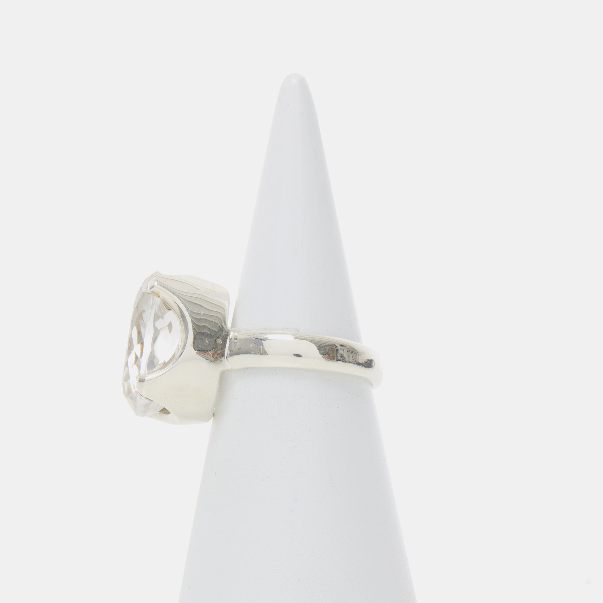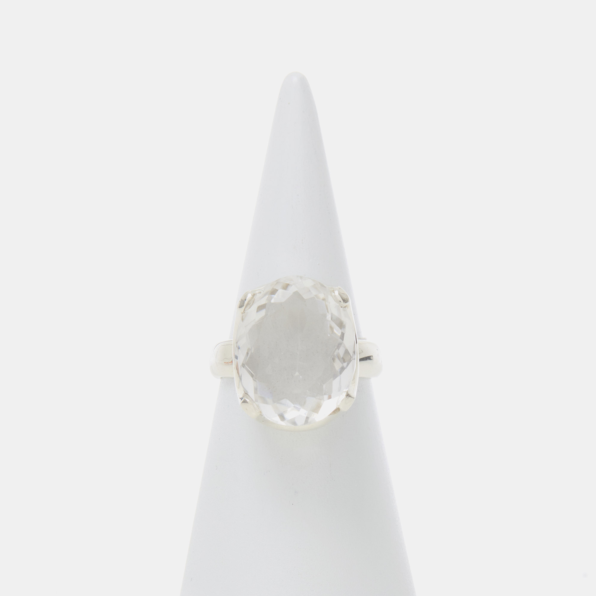 Anello in Argento 925‰, realizzato artigianalmente, con Cristallo di Rocca ovale sfaccettato.