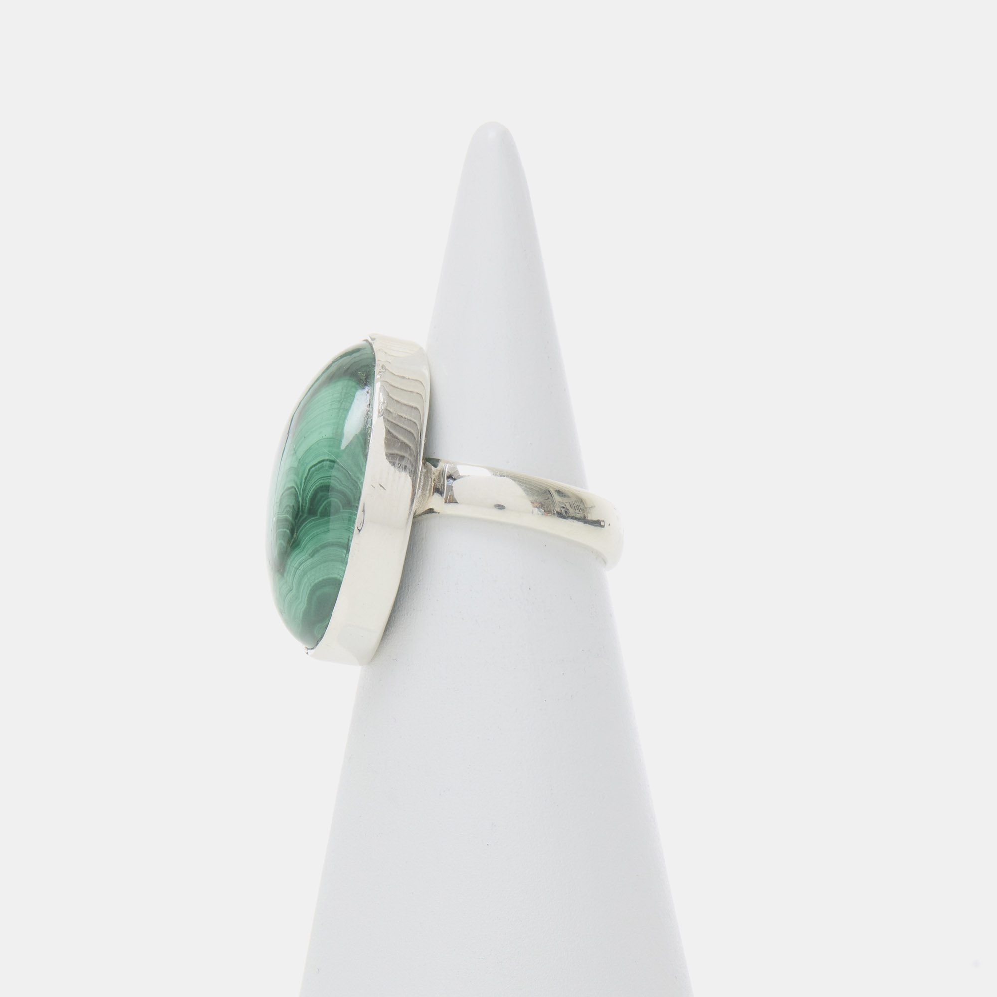 Anello in Argento 925‰, realizzato artigianalmente, con Malachite ovale liscia