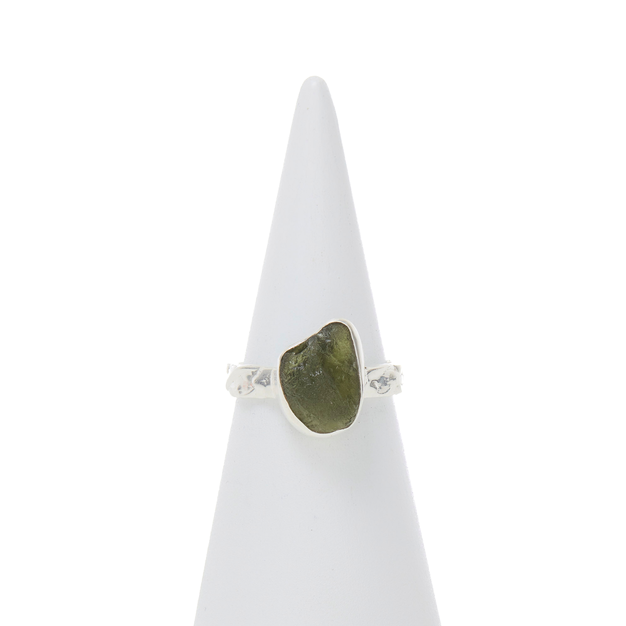 Anello in Argento 925‰, realizzato artigianalmente, con Moldavite Grezza.