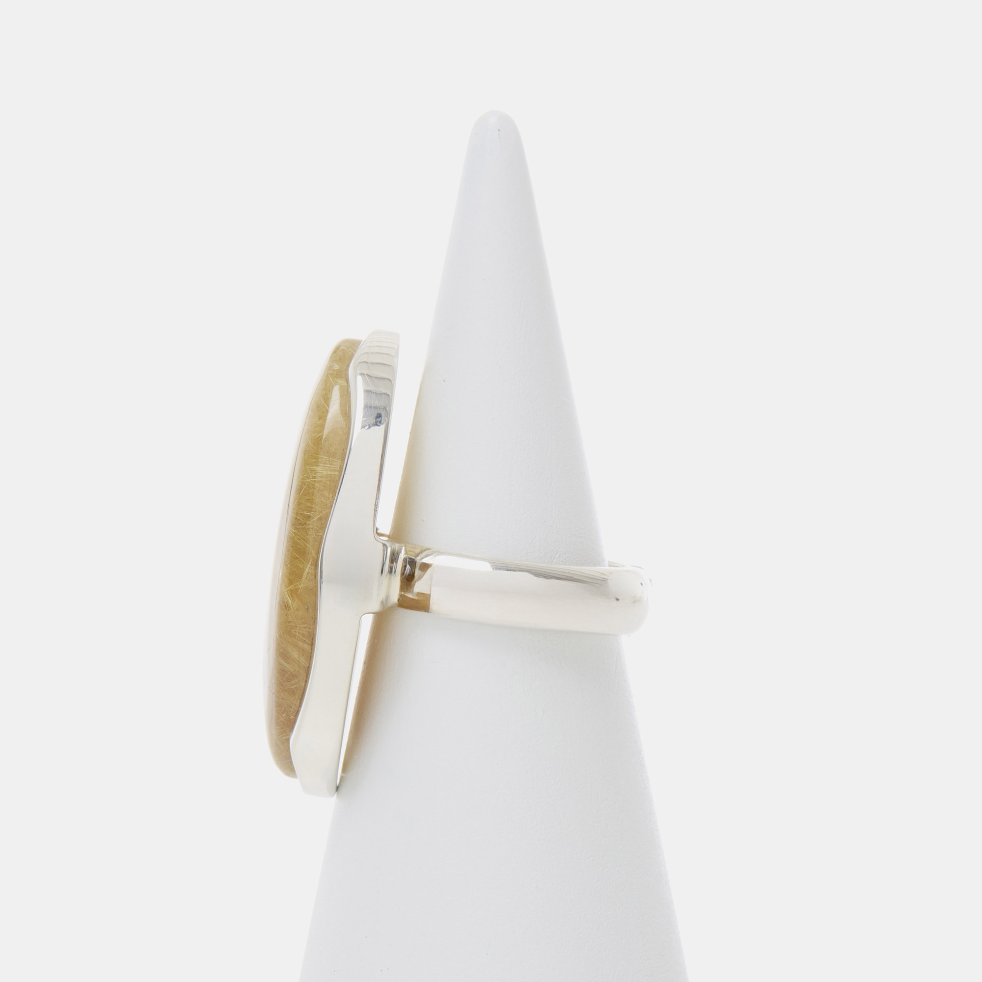 Anello in Argento 925‰ rodiato, realizzato artigianalmente, con Quarzo Rutilato ovale liscio