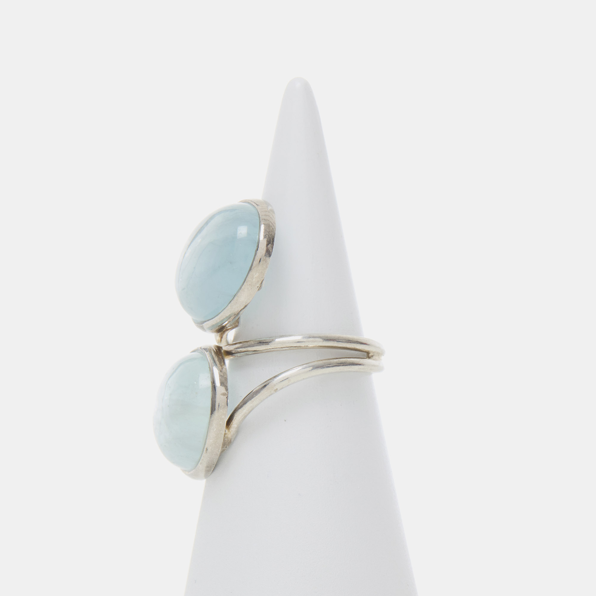 Anello Regolabile in Argento 925‰ rodiato, realizzato artigianalmente in Italia, con Acquamarina a cabochon liscio