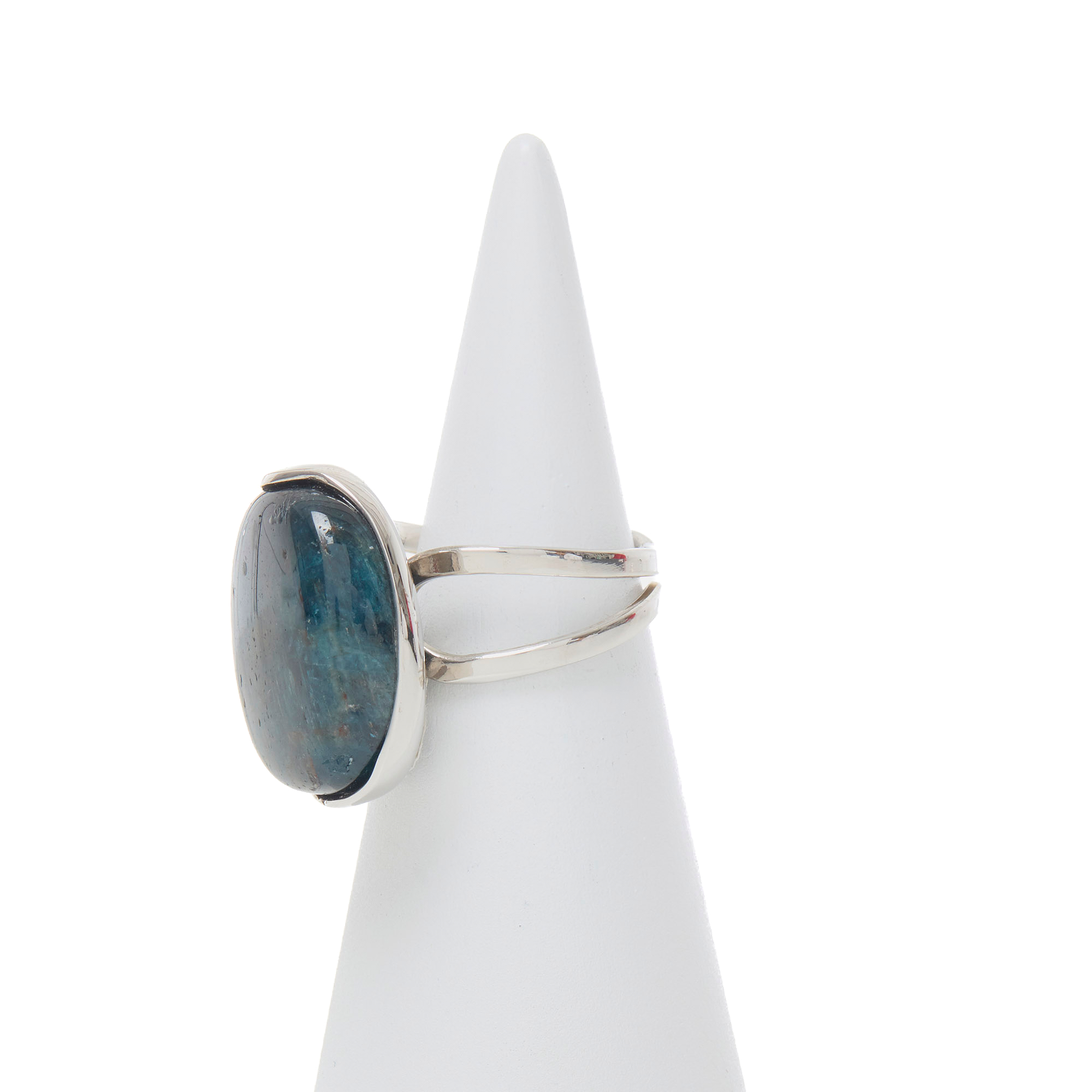 Anello Regolabile in Argento 925‰ rodiato, realizzato artigianalmente in Italia, con Apatite liscia.