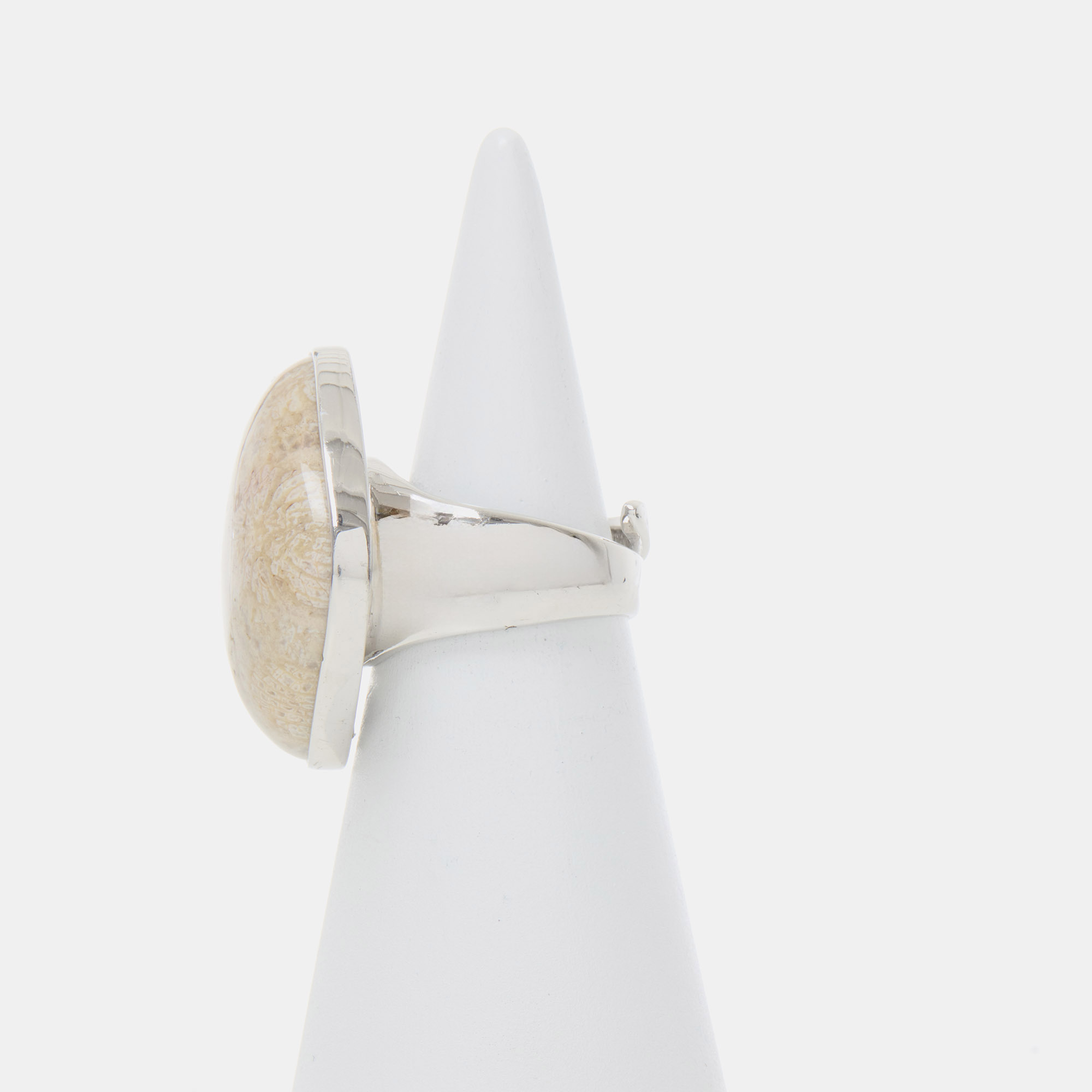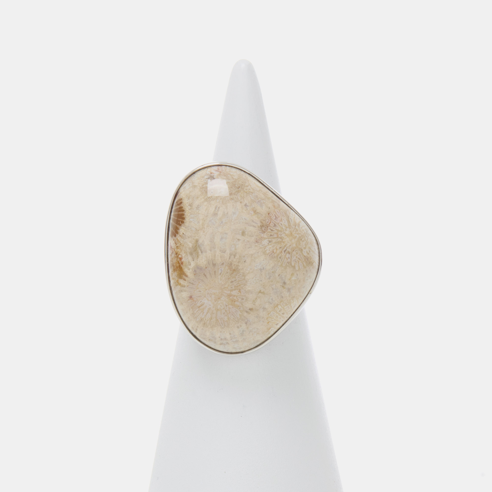 Anello Regolabile in Argento 925‰ rodiato, realizzato artigianalmente in Italia, con Corallo Fossile
