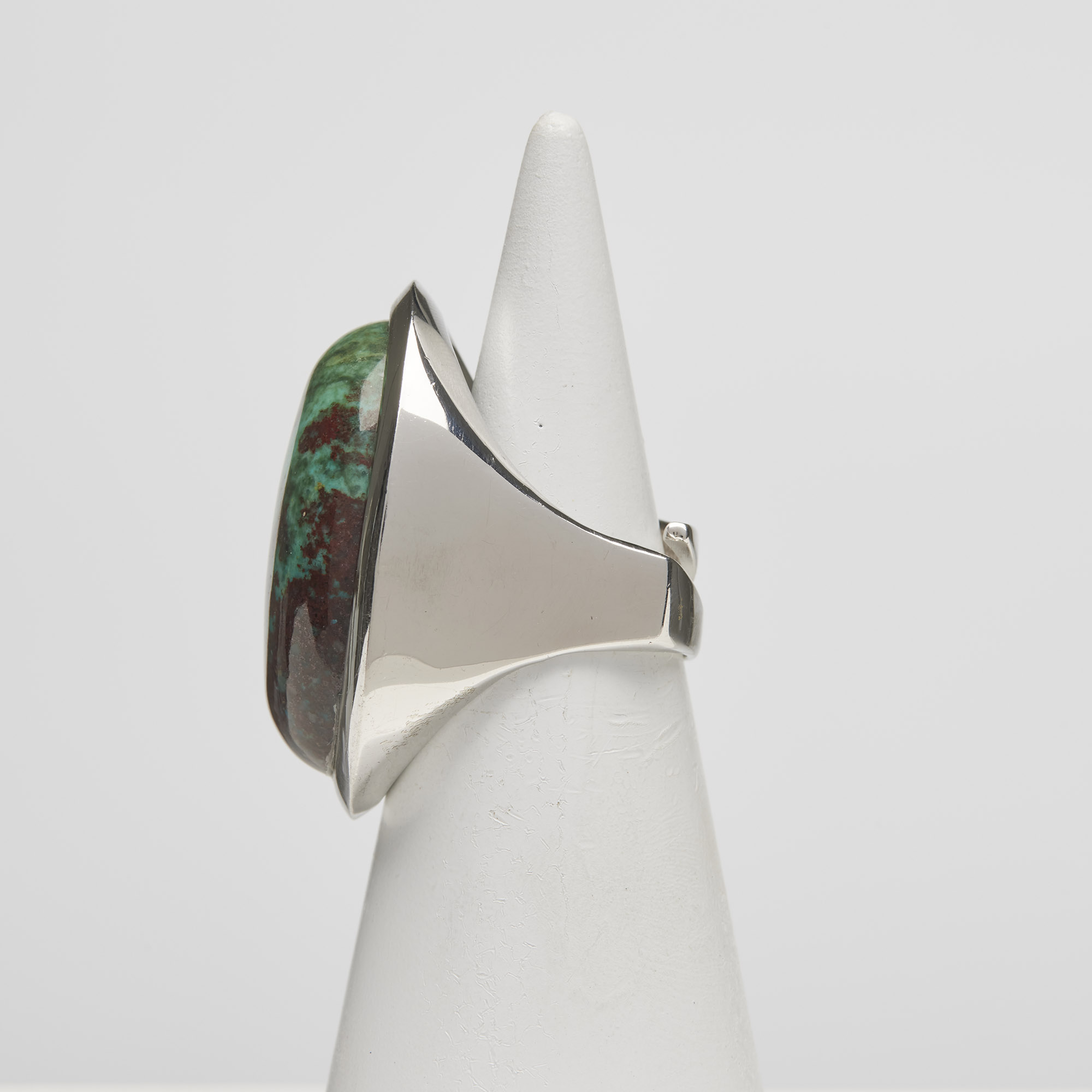 Anello Regolabile in Argento 925‰ rodiato, realizzato artigianalmente, con Turchese.