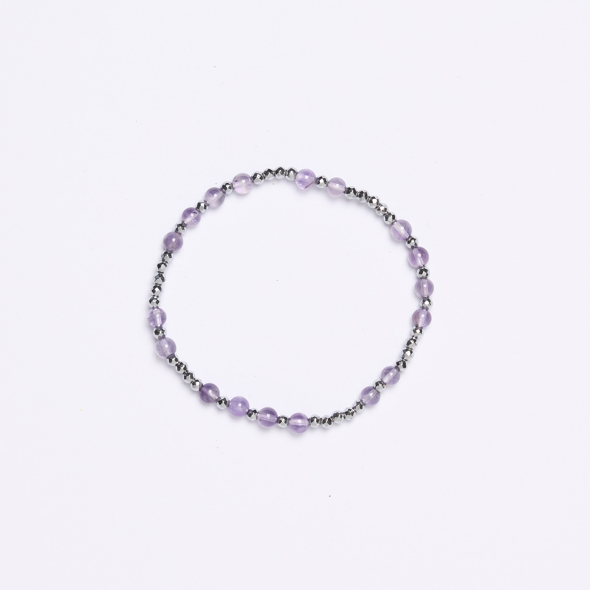 Bracciale infilato con Elastico in Ematite rodiata ed Ametista a sfera liscia. Realizzato in Italia.