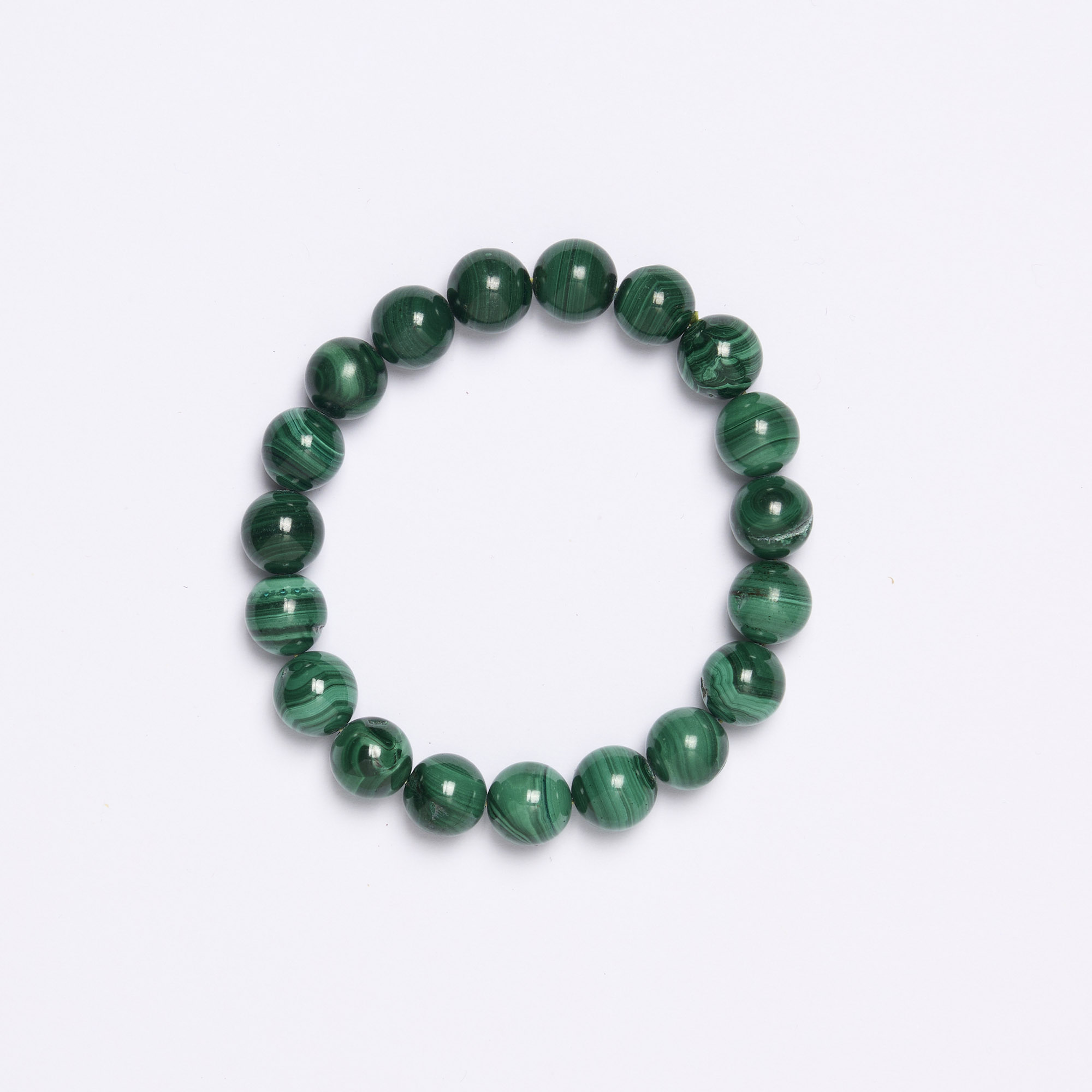 Bracciale Elastico in Malachite a sfera liscia di 10 mm.