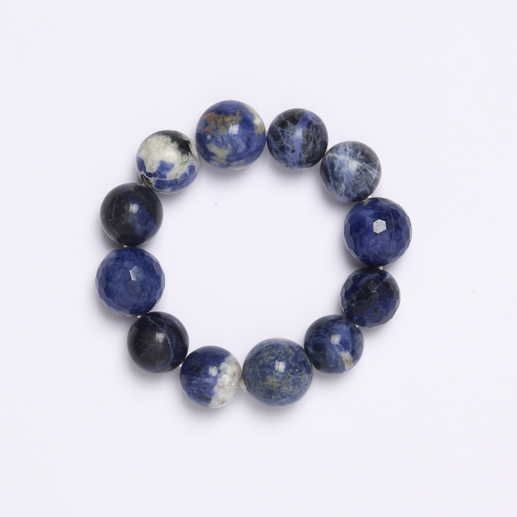 Bracciale elastico in Sodalite a sfere lisce e sfaccettate. Realizzato in Italia