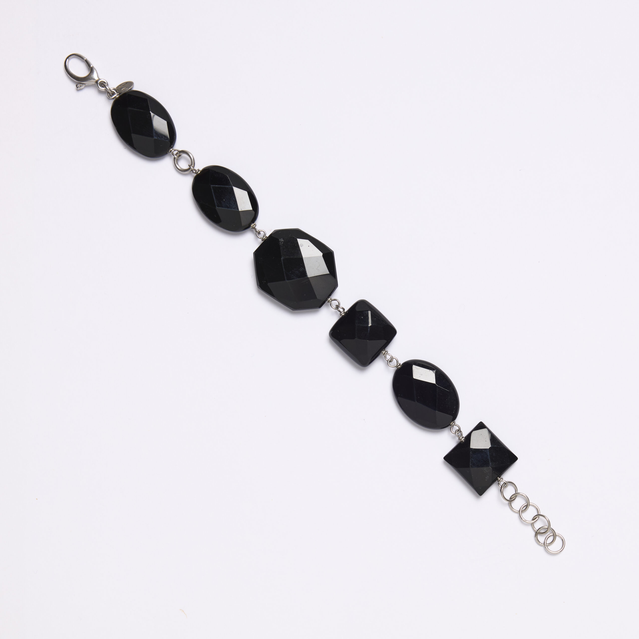 Bracciale in Agata Nera a forme piatte ed Argento. Chiusura in argento 925‰ rodiato. Realizzato in Italia.