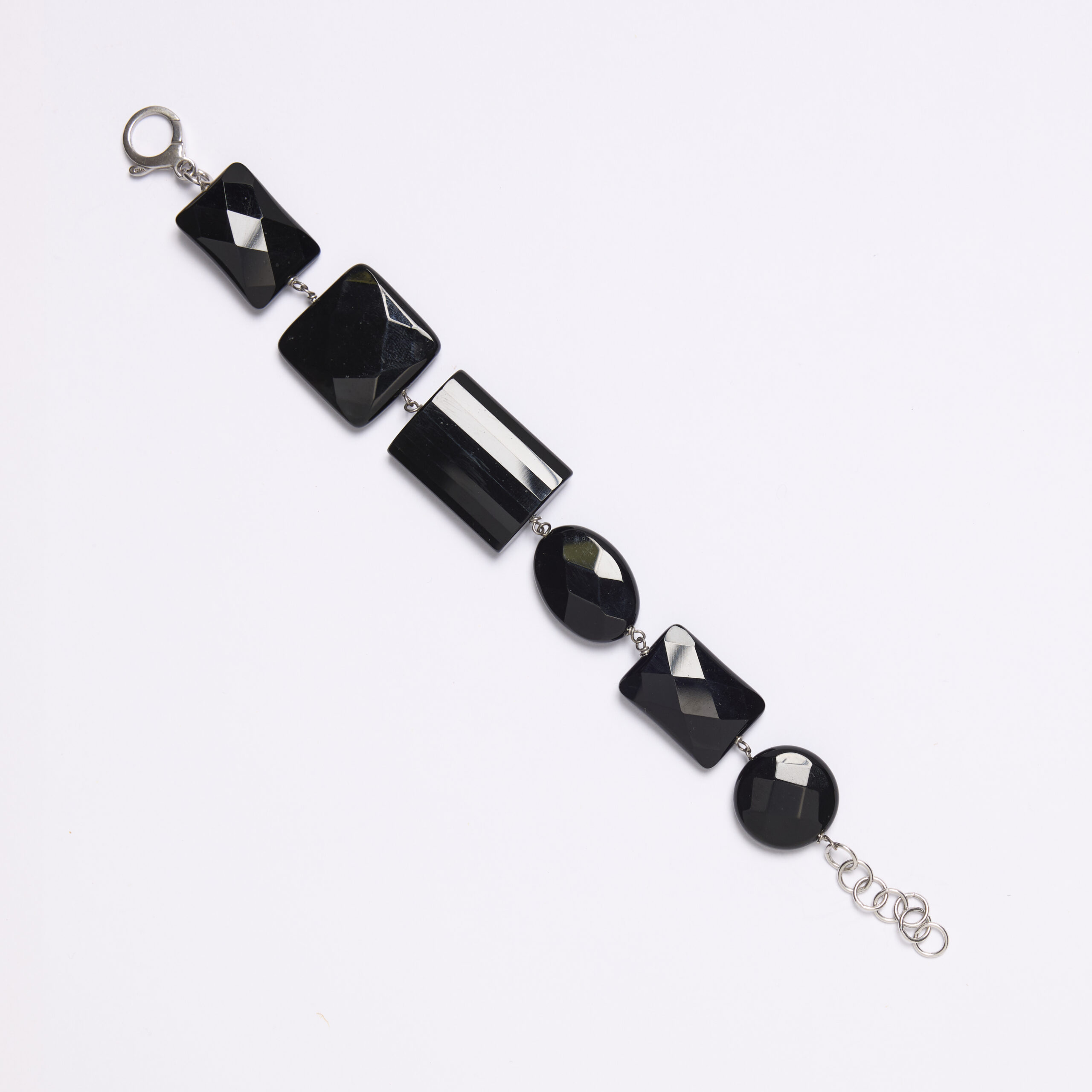 Bracciale in Agata Nera a forme piatte ed Argento. Chiusura in argento 925‰ rodiato. Realizzato in Italia.