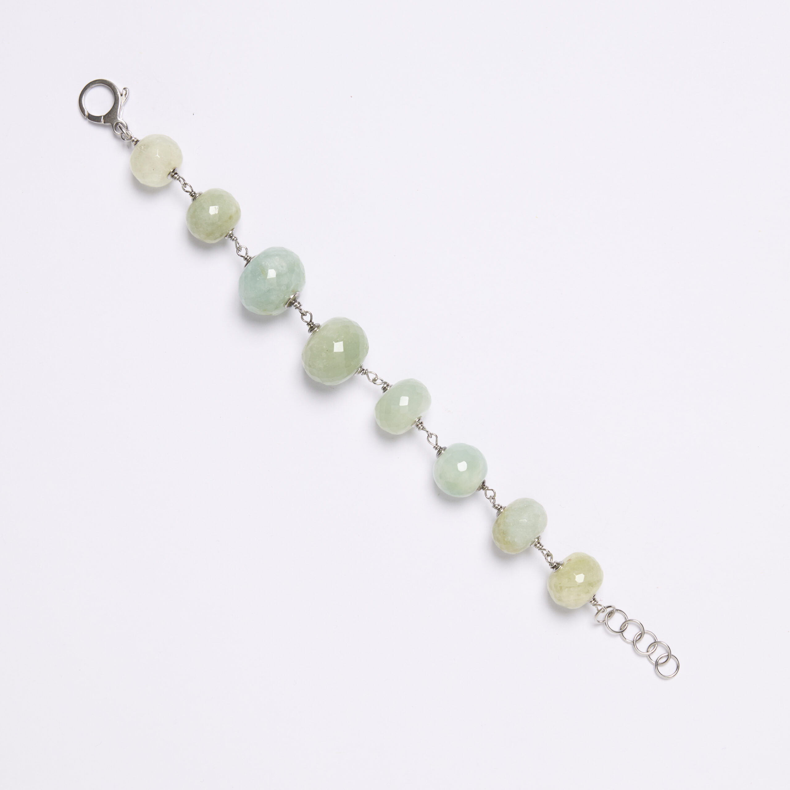 Bracciale rilegato in Acquamarina a rondella e sfera sfaccettata. Chiusura in argento 925‰ rodiato. Realizzato in Italia.