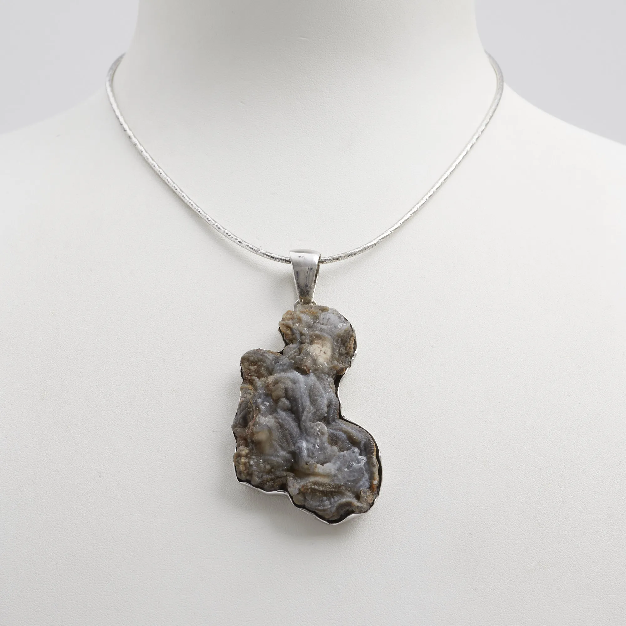 Ciondolo in Conchinas con Castone, montato in argento 925‰ rodiato, realizzato artigianalmente in Italia. Girocollo in argento venduto separatamente.