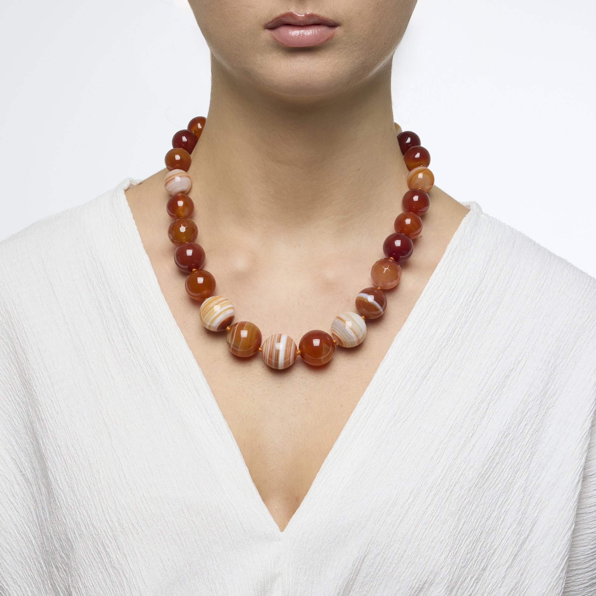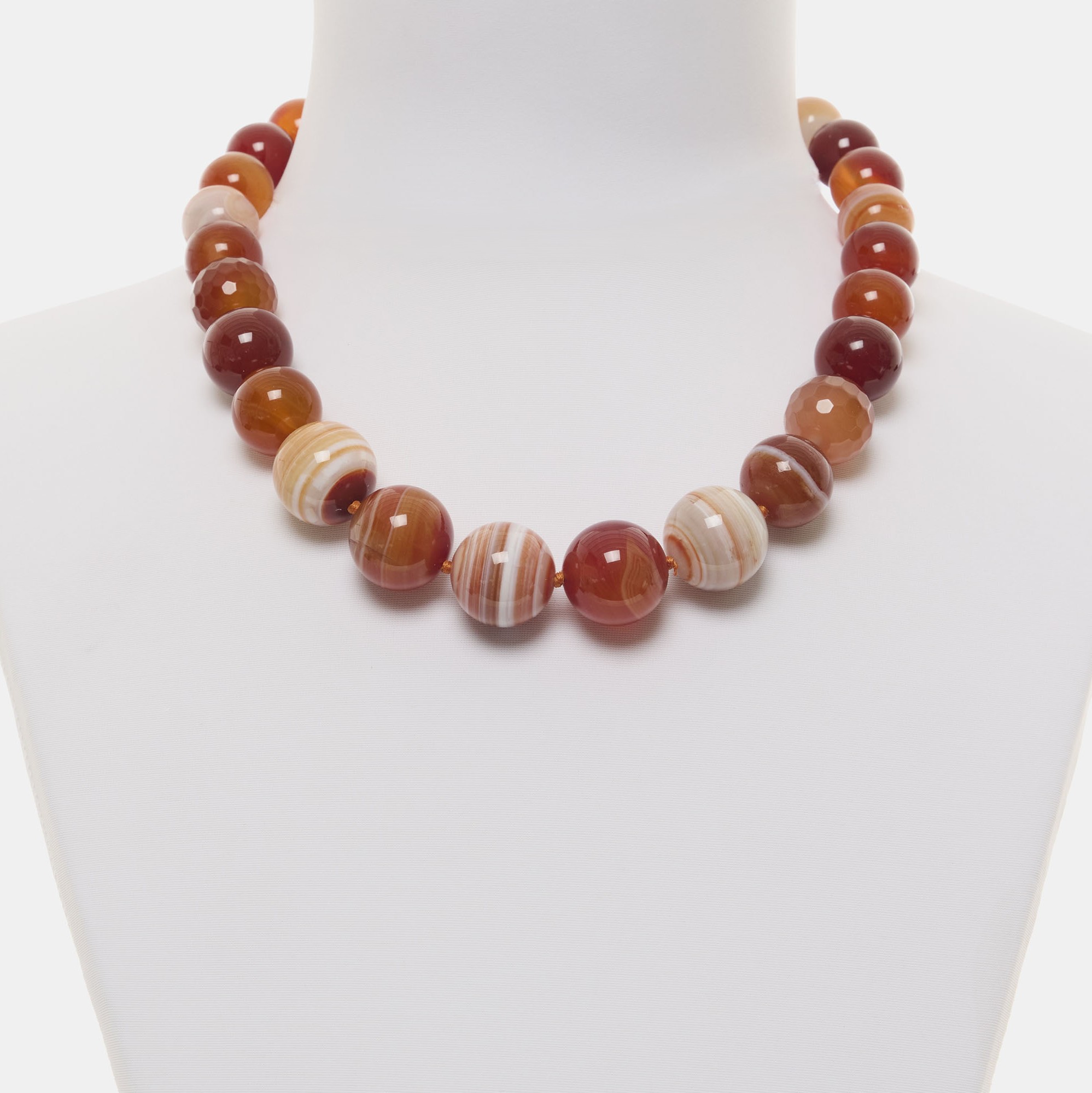 Collana infilata in Agata rossa e Corniola a Sfera liscia. Chiusura in Argento 925‰ rodiato. Realizzata in Italia.