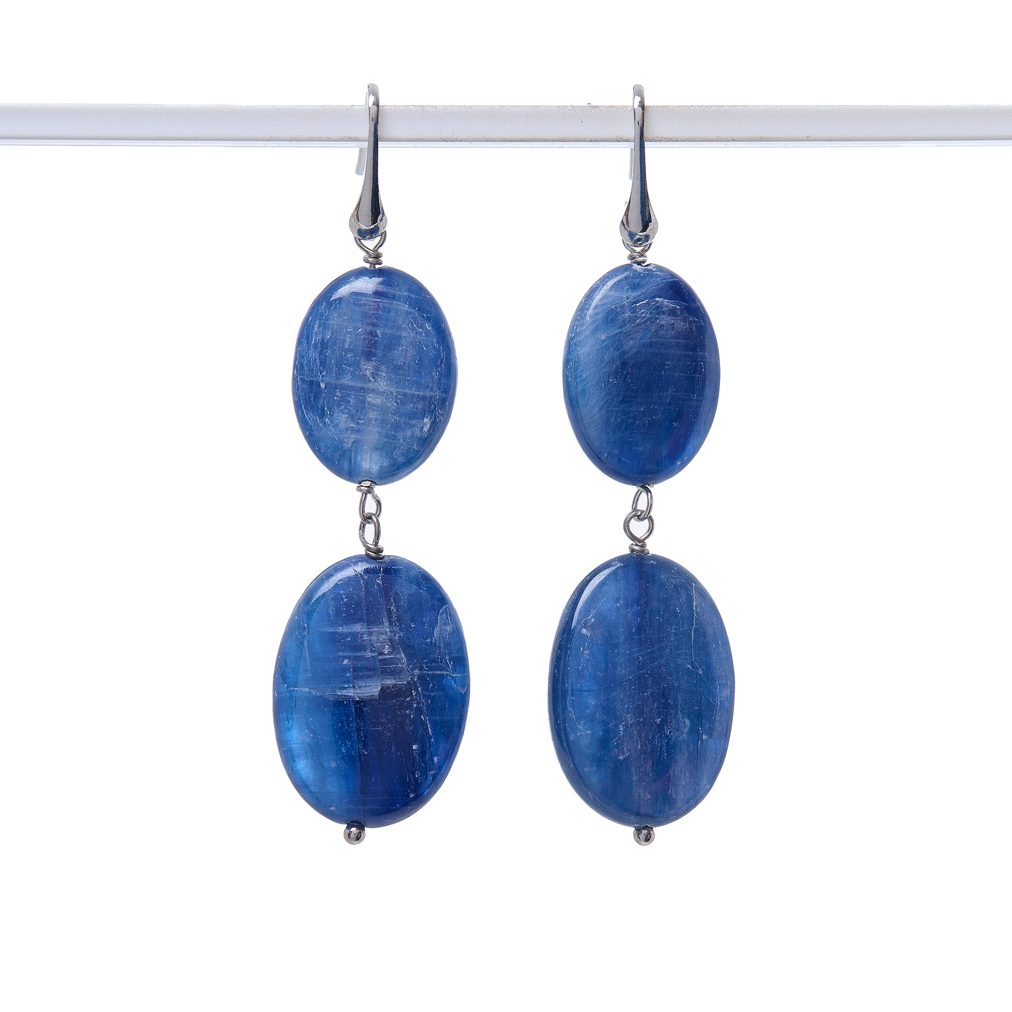 Boucles d’oreilles en kyanite lié de forme ovale avec crochet en argent rhodié 925‰. Fabriquées en Italie.