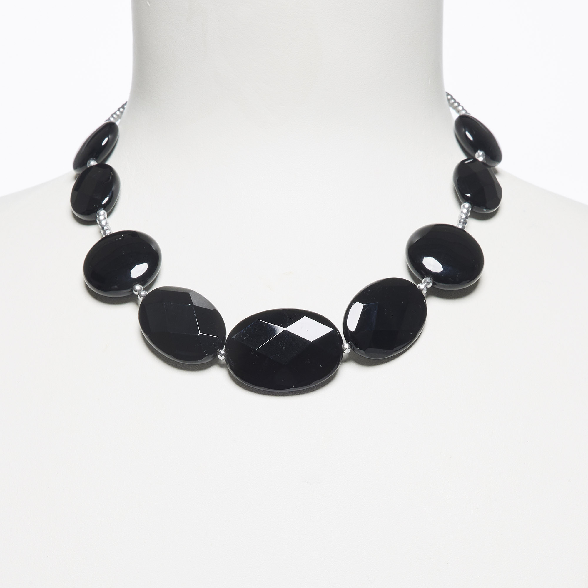 Collier van zwarte agaat en gerhodineerde hematiet