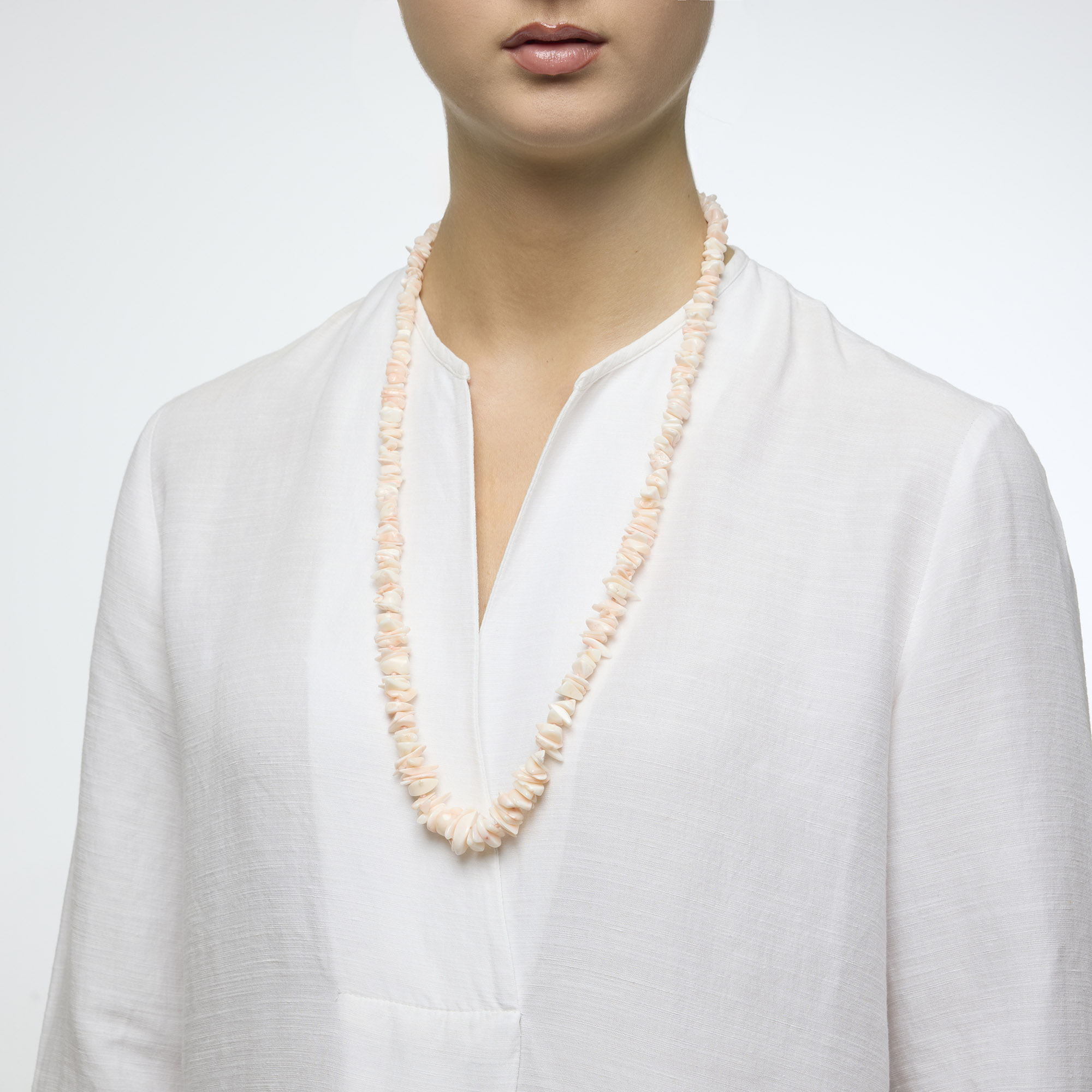 Ketting geregen in Angel Skin koraal met onregelmatige chips. Gesp van gerhodineerd 925‰ zilver. Gemaakt in Italië.