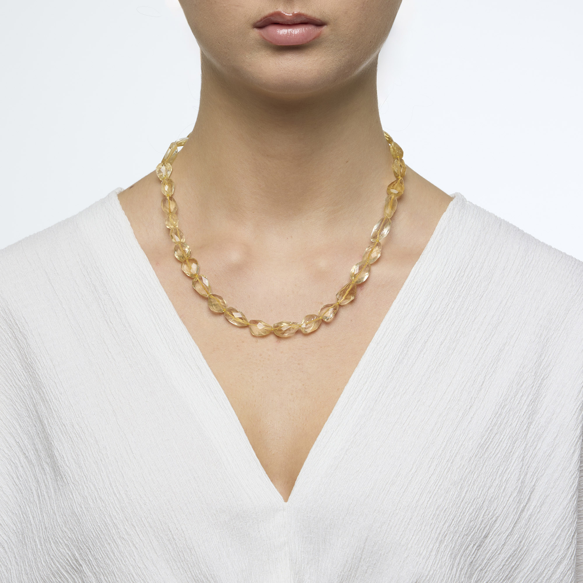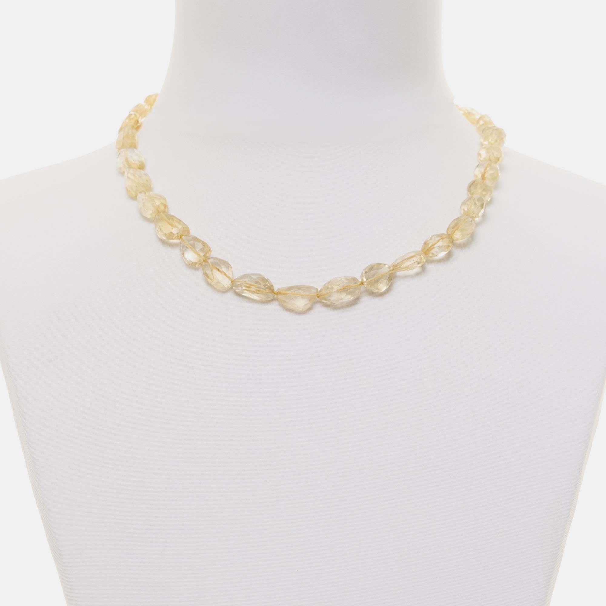 Korte halsketting van onregelmatig gefacetteerde Citrienkwarts. Sluiting in gerhodineerd 925‰ zilver. Gemaakt in Italië.