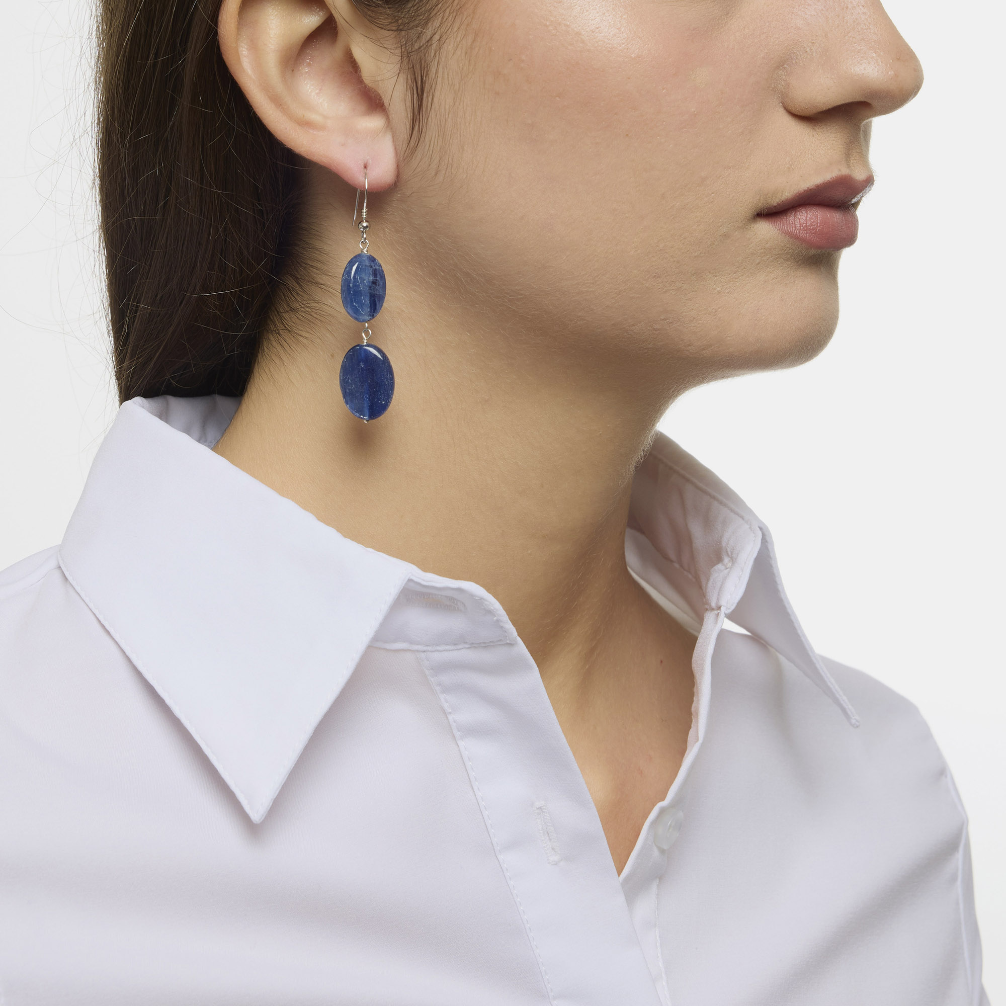 Oorbellen van kyaniet en gerhodineerd 925‰ zilver. Gemaakt in Italië.