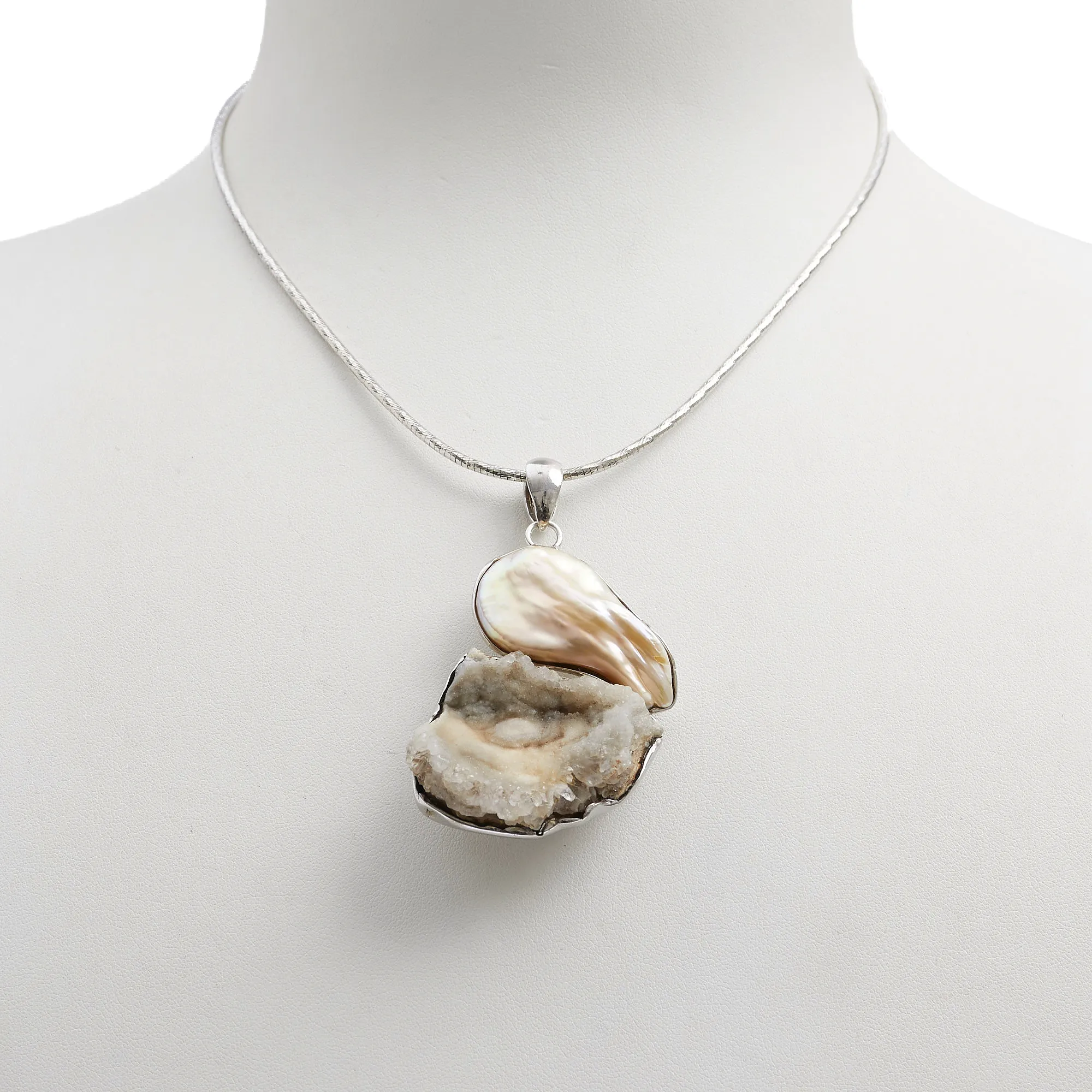Hanger van Conchina’s en Parels, gemonteerd in gerhodineerd 925‰ zilver, handgemaakt in Italië. Zilveren halsketting apart verkrijgbaar.