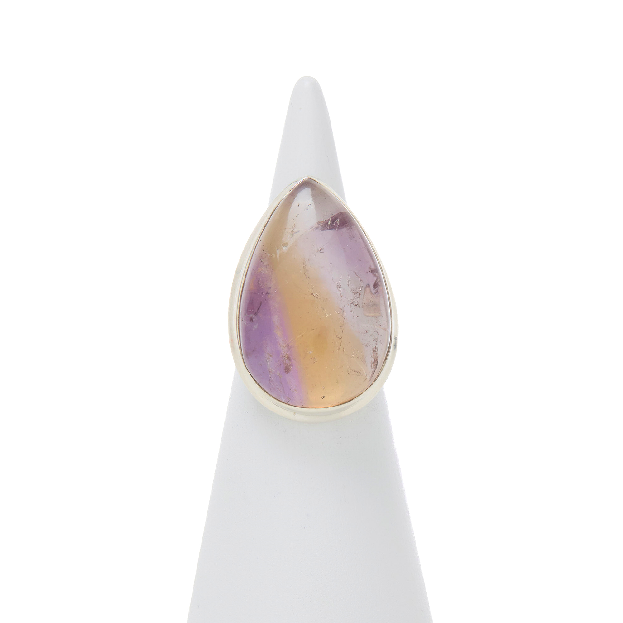 Handgemaakte 925‰ sterling zilveren ring met gladde Amethist druppel