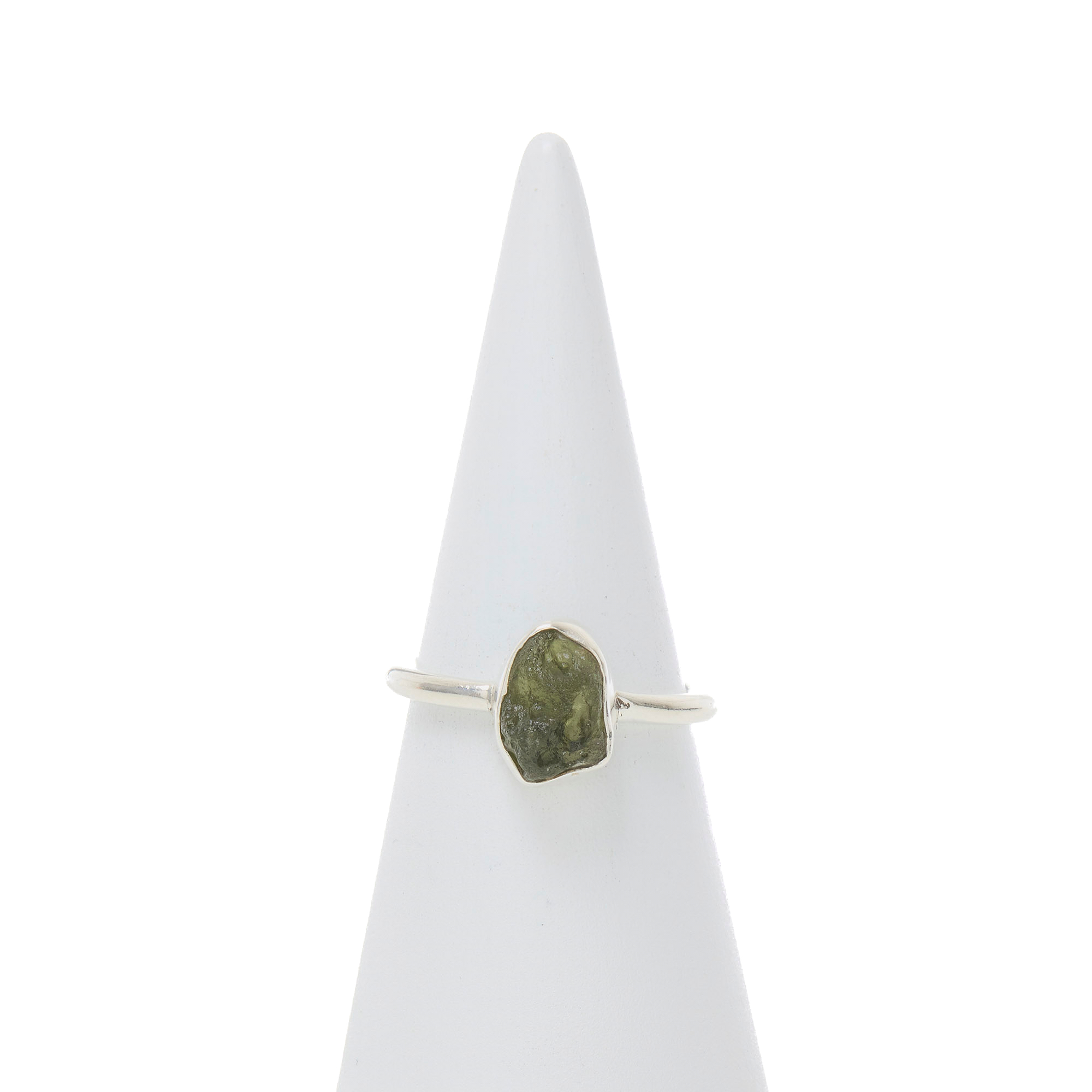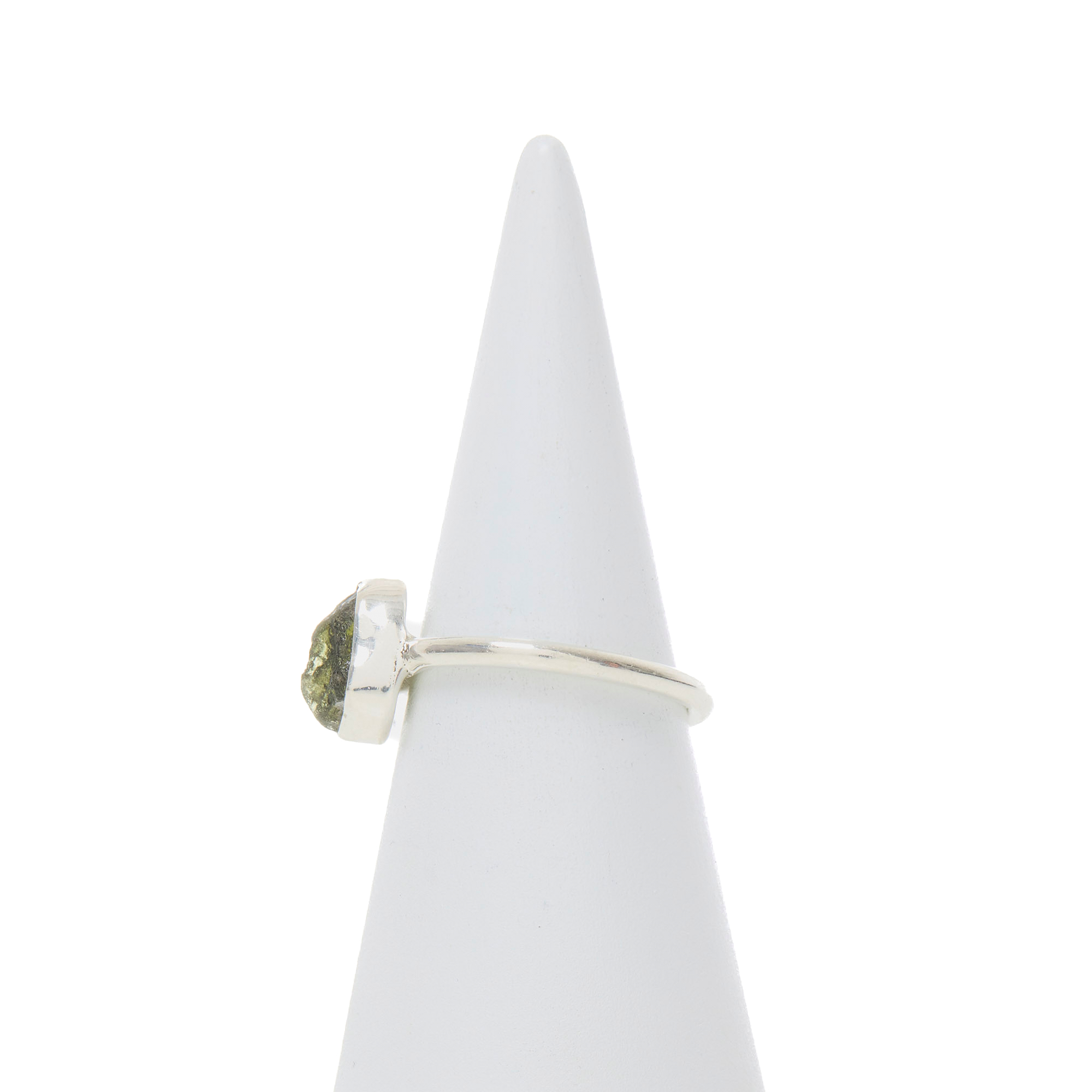 Handgemaakte 925‰ zilveren ring met ruwe Moldaviet.