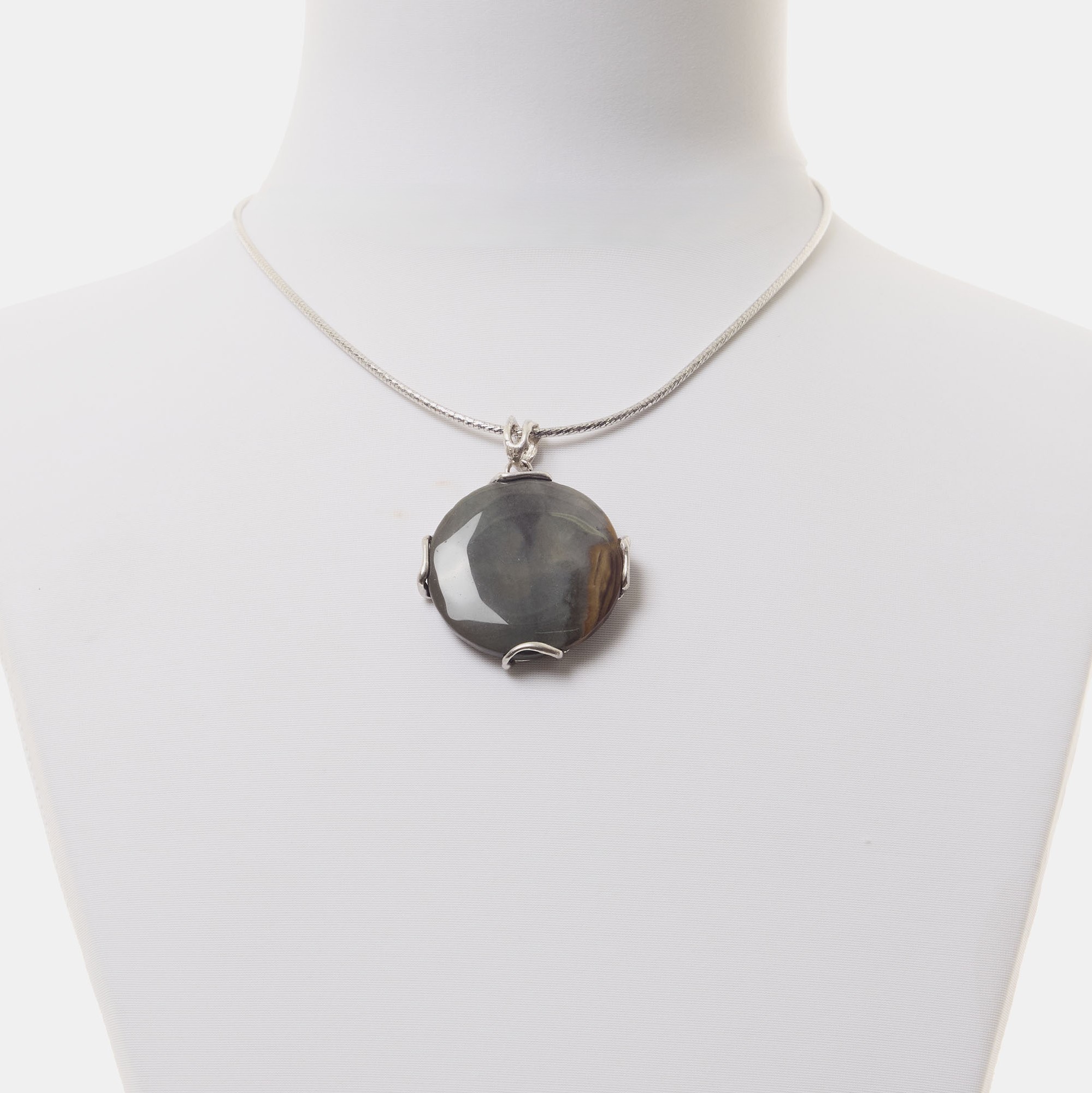 Ciondolo in Diaspro Landscape a disco liscio, con montatura e gancio in Argento 925‰ rodiato. Realizzato in Italia.