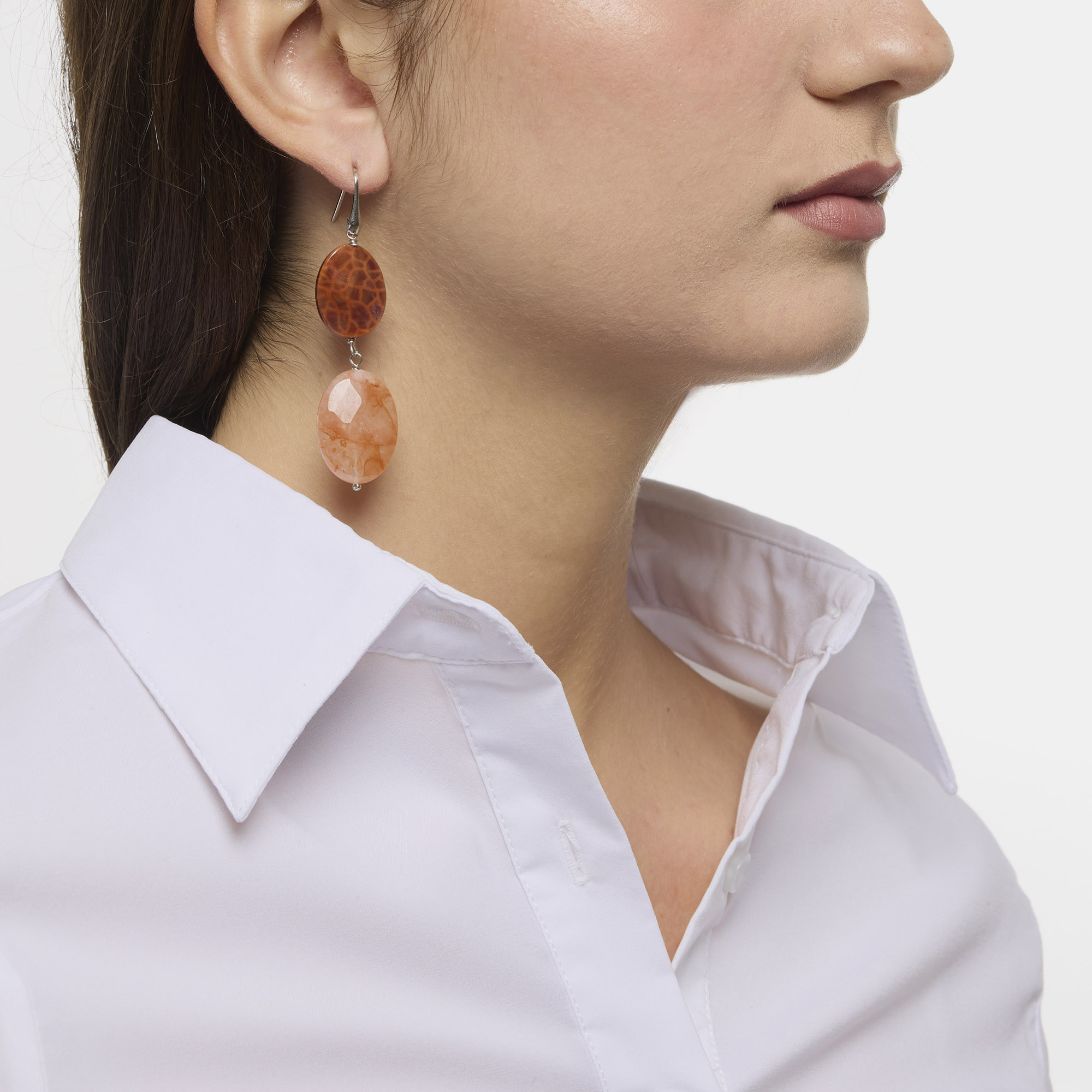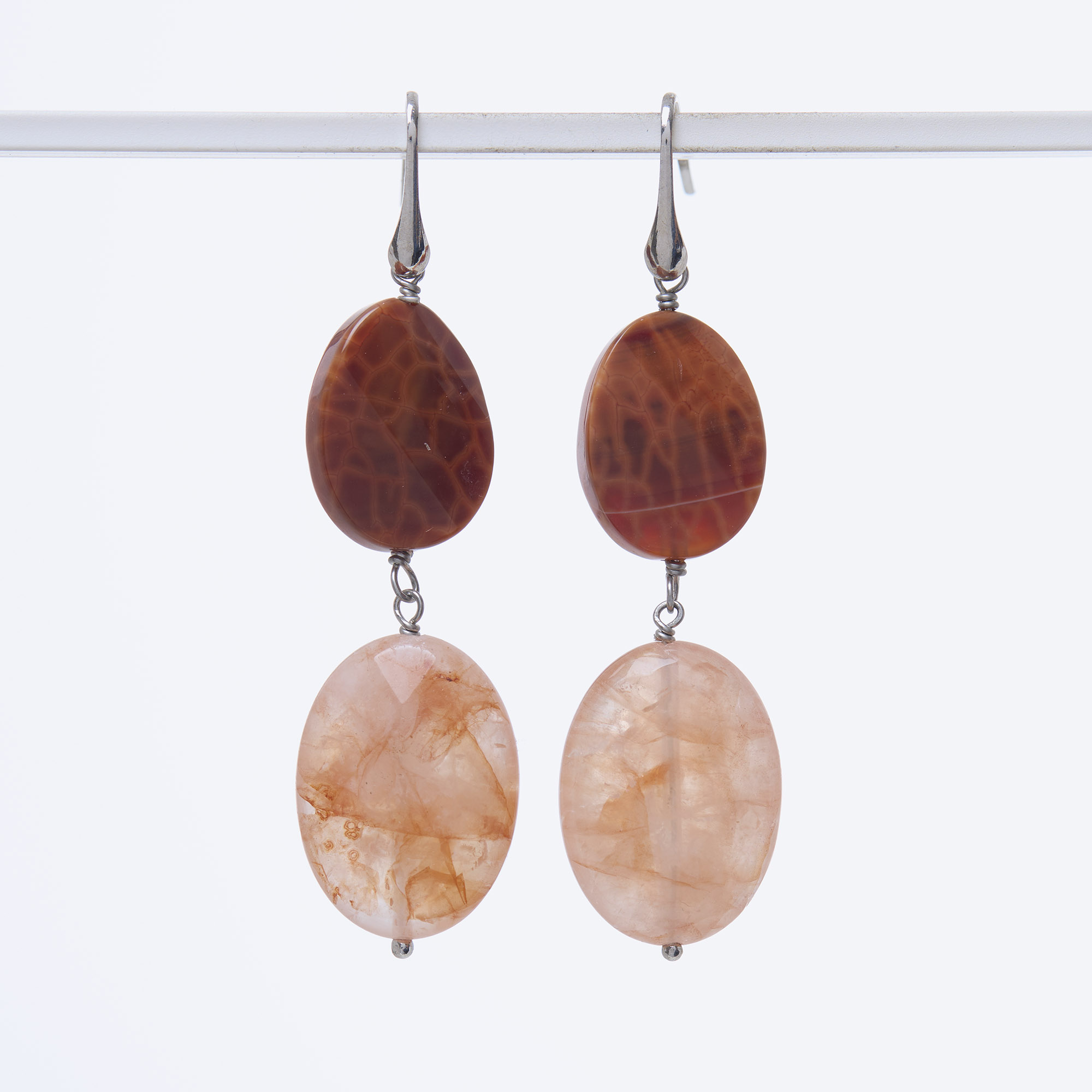 Orecchini a due elementi in Agata di Fuoco e Quarzo Ematoide, con amo in Argento 925‰ rodiato, realizzati in Italia.