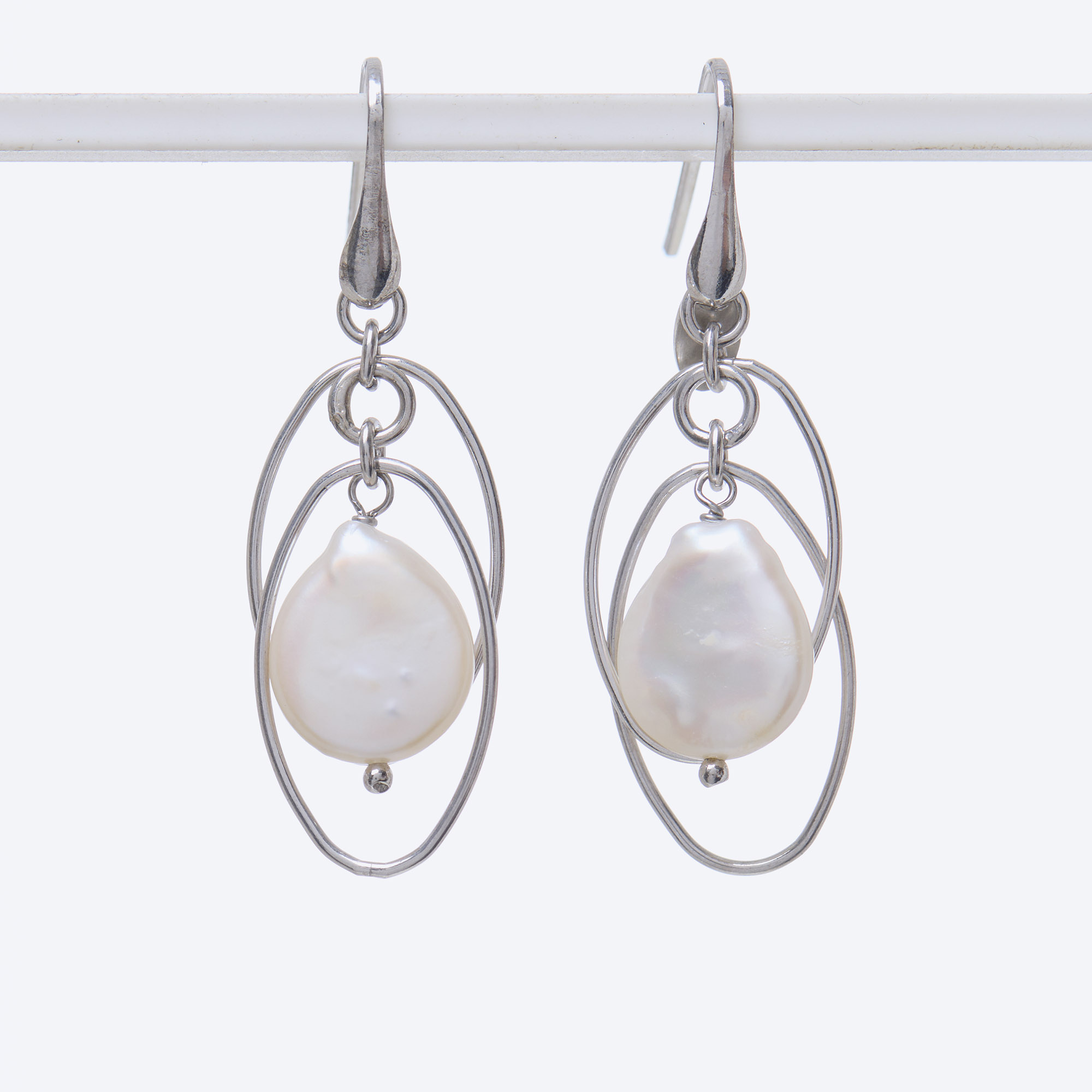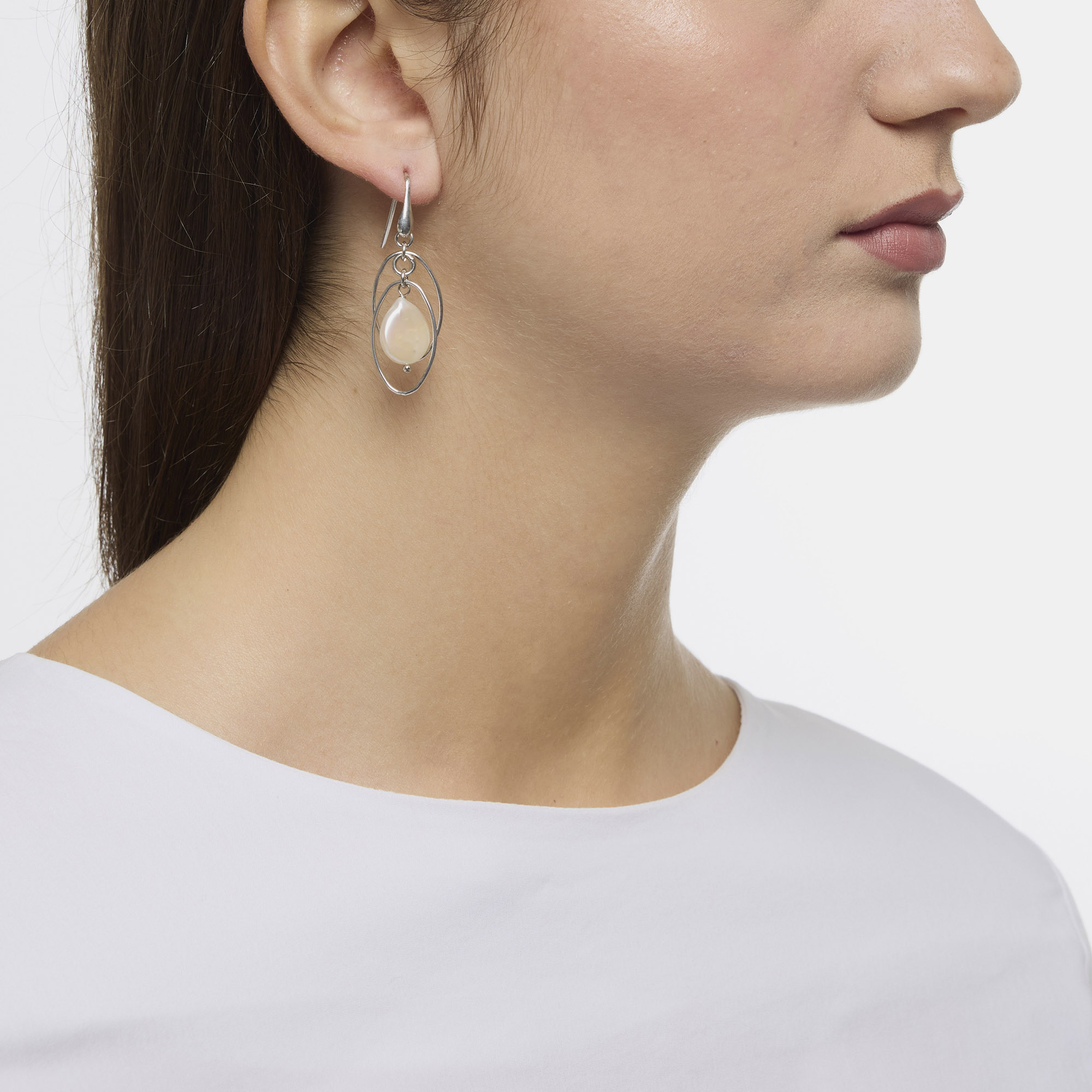 Orecchini in Perle e catena in Argento, con amo in Argento 925‰ rodiato, realizzati in Italia.