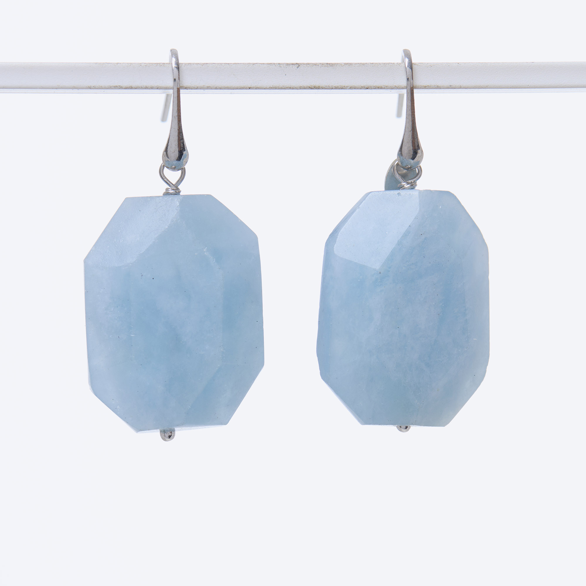 Orecchino in Acquamarina piatta sfaccettata, con amo in Argento 925‰ rodiato. Realizzati in Italia.