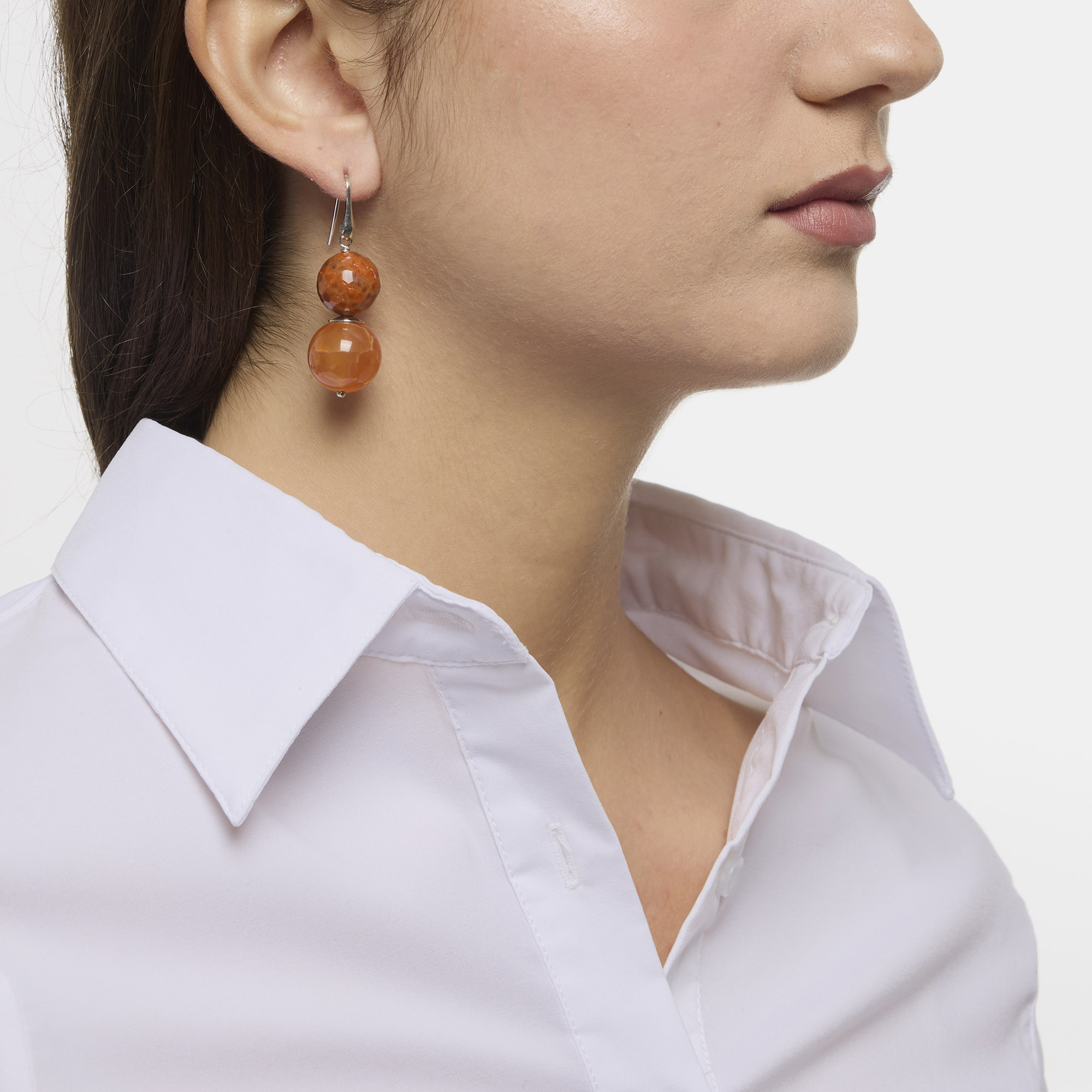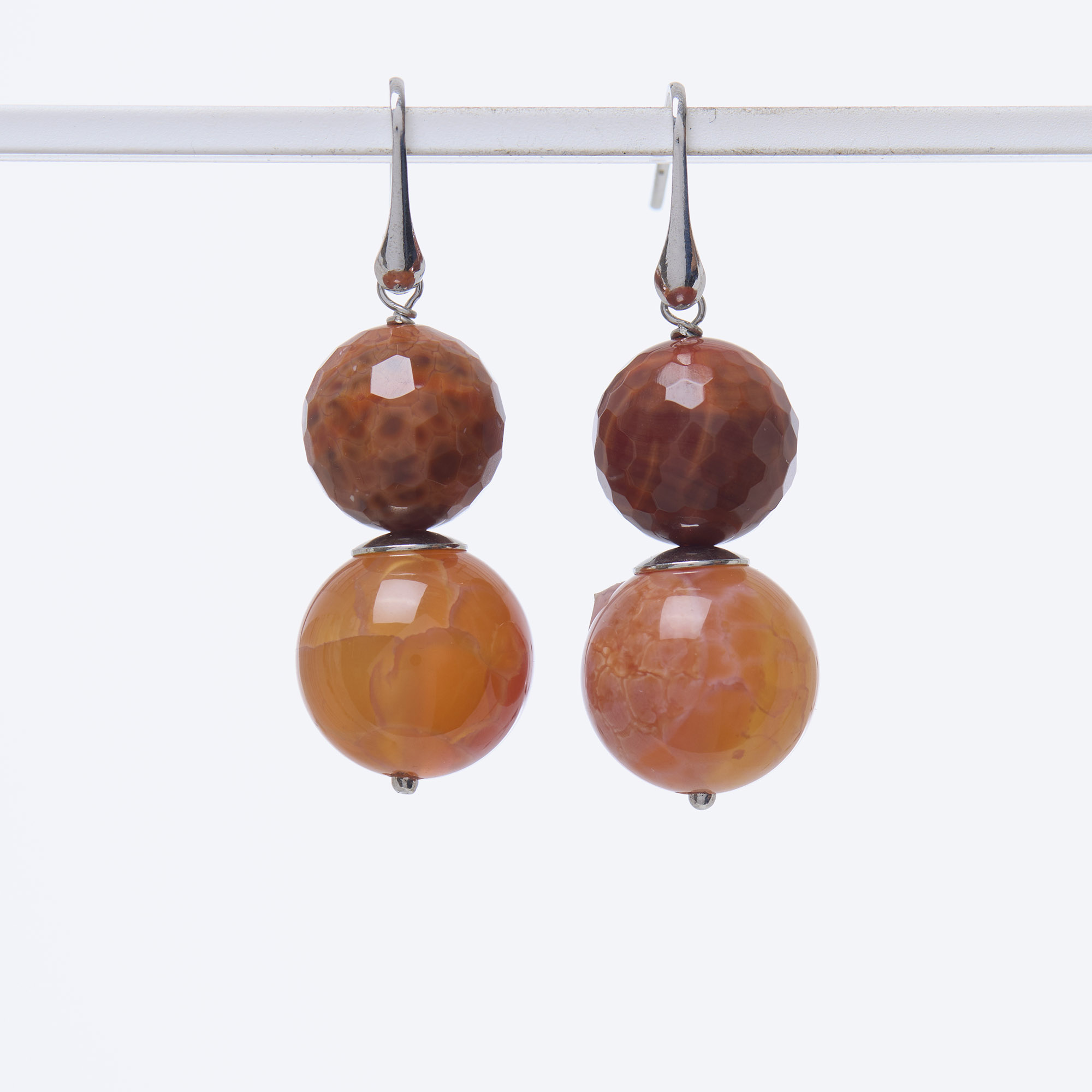 Orecchini in Agata di Fuoco con elementi a coppetta ed amo in Argento 925‰ rodiato. Realizzati in Italia.