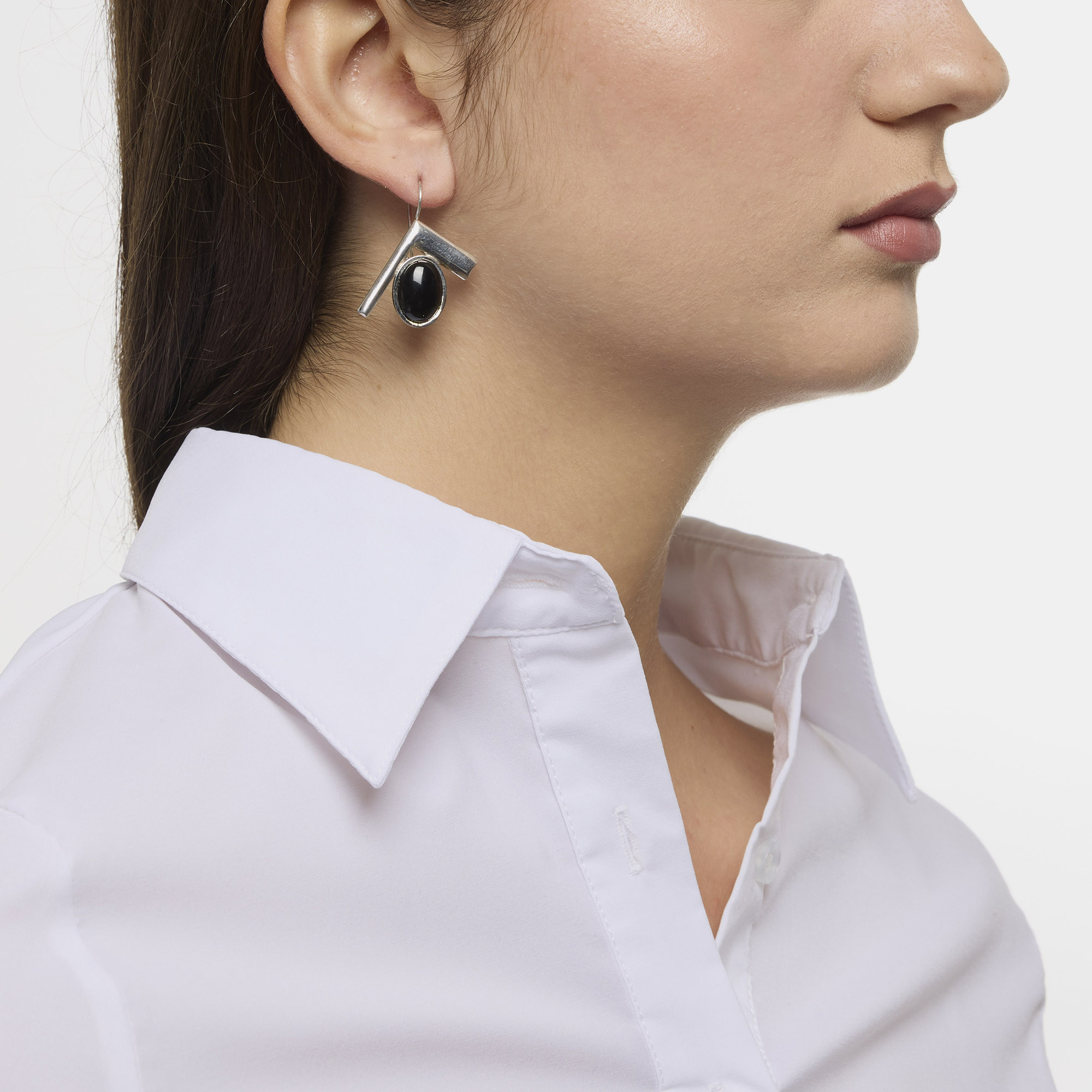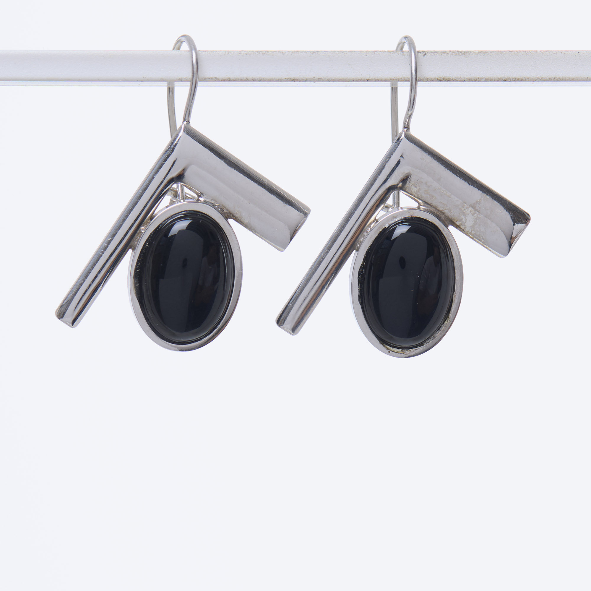Orecchini in Agata Nera, con amo ed elementi in argento 925‰ rodiato. Realizzati in Italia.