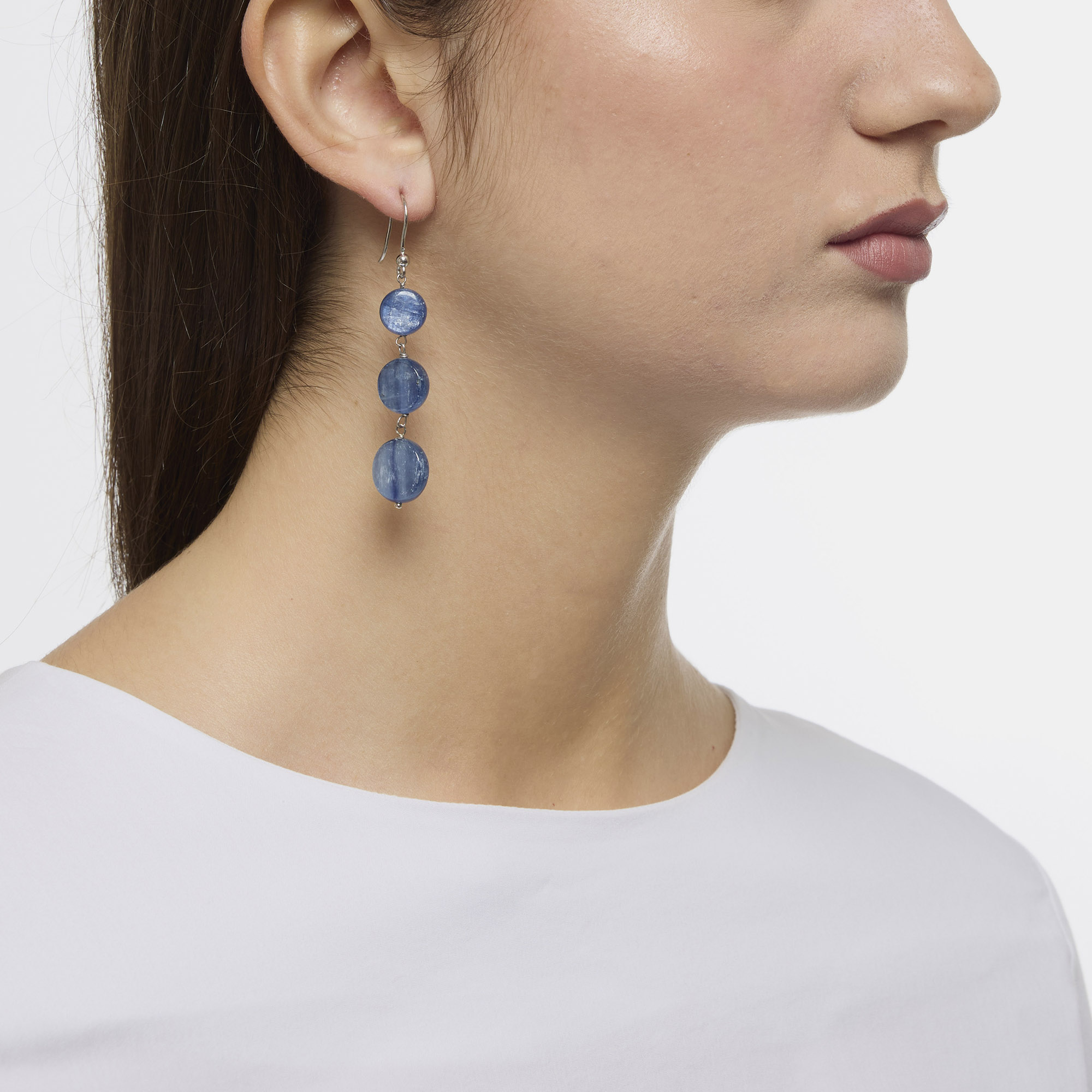 Orecchini in Cianite a forme piatte, rilegate e con amo in argento 925‰ rodiato. Realizzati in Italia.