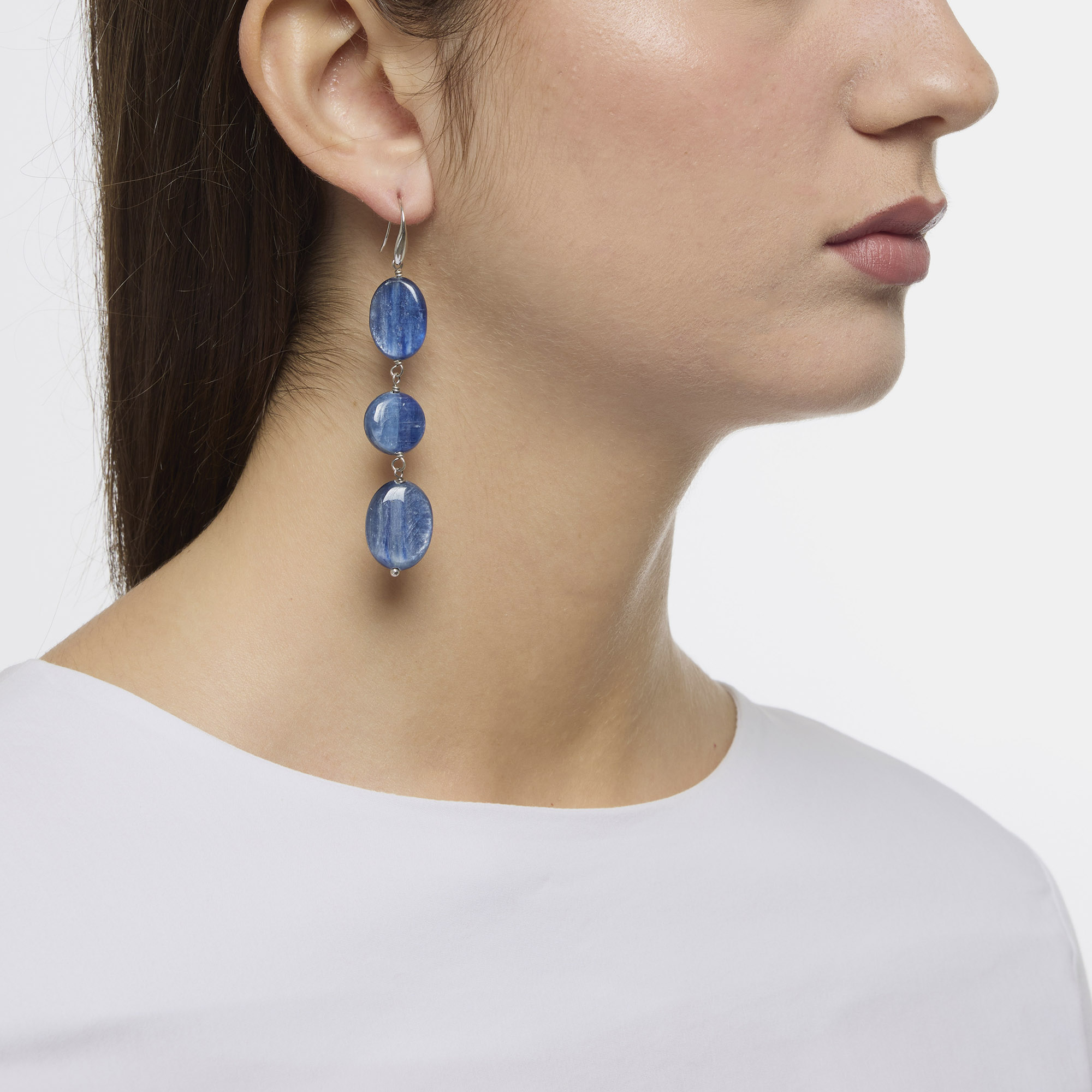 Orecchini in Cianite a forme piatte, rilegate e con amo in argento 925‰ rodiato. Realizzati in Italia.