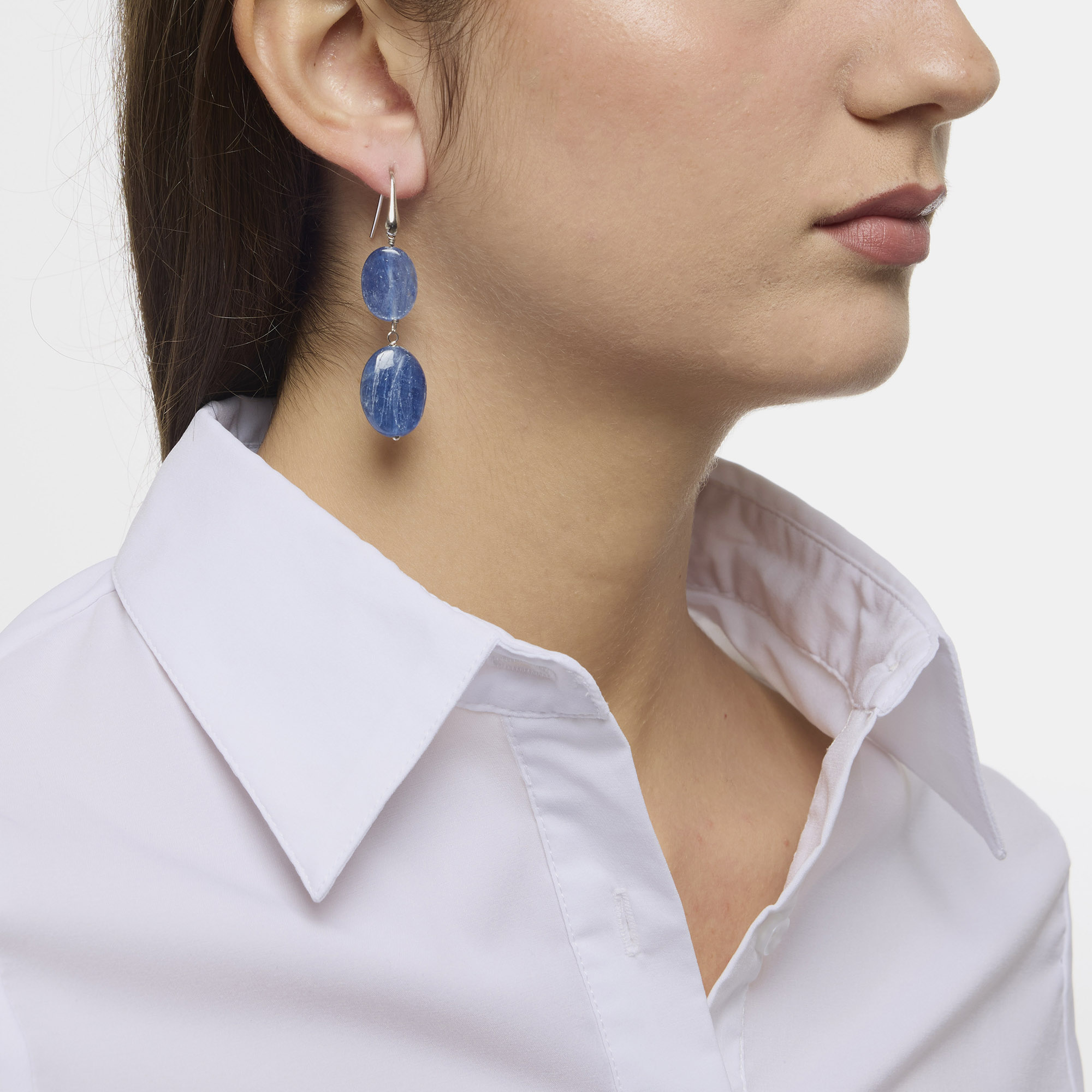 Orecchini in Cianite ovale, con amo in Argento 925‰ rodiato. Realizzati in Italia.