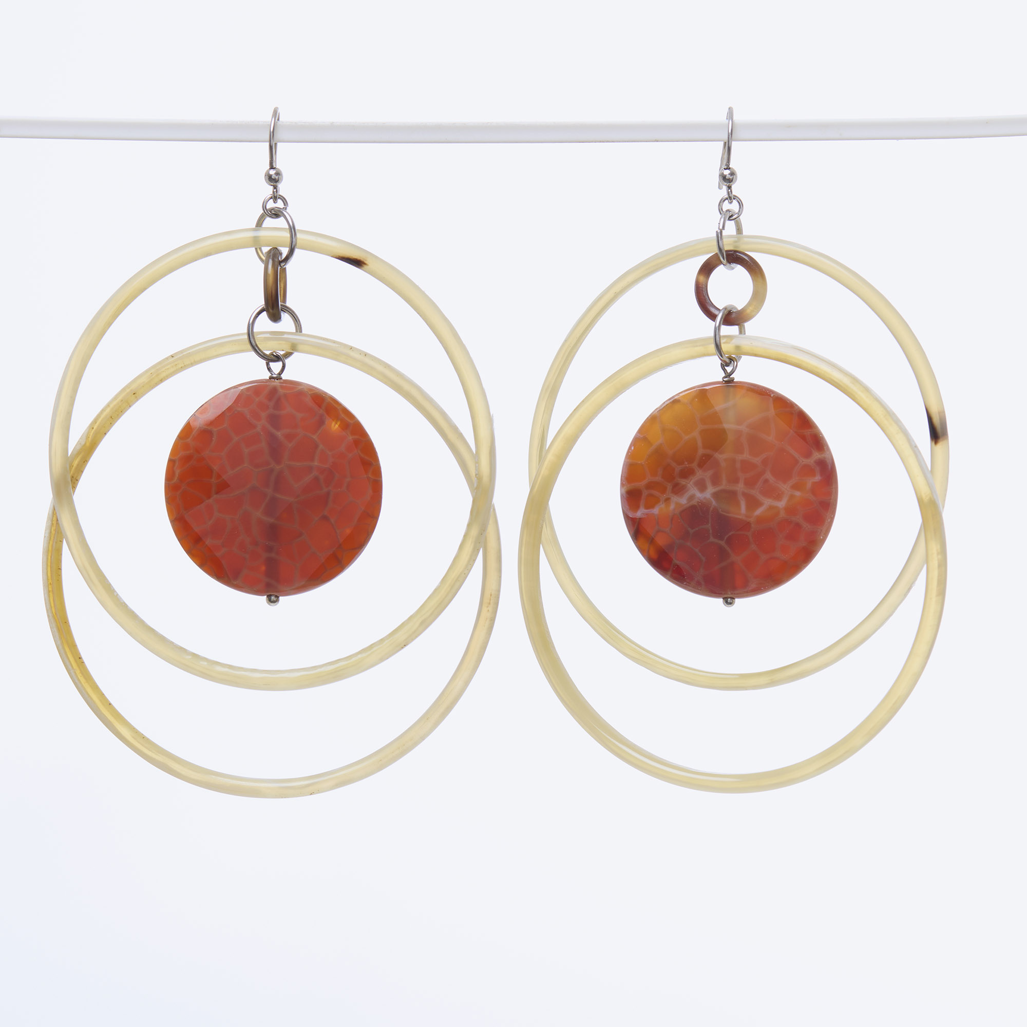 Orecchini in Corno ed Agata di Fuoco, con amo in Argento 925‰ rodiato, realizzati in Italia.