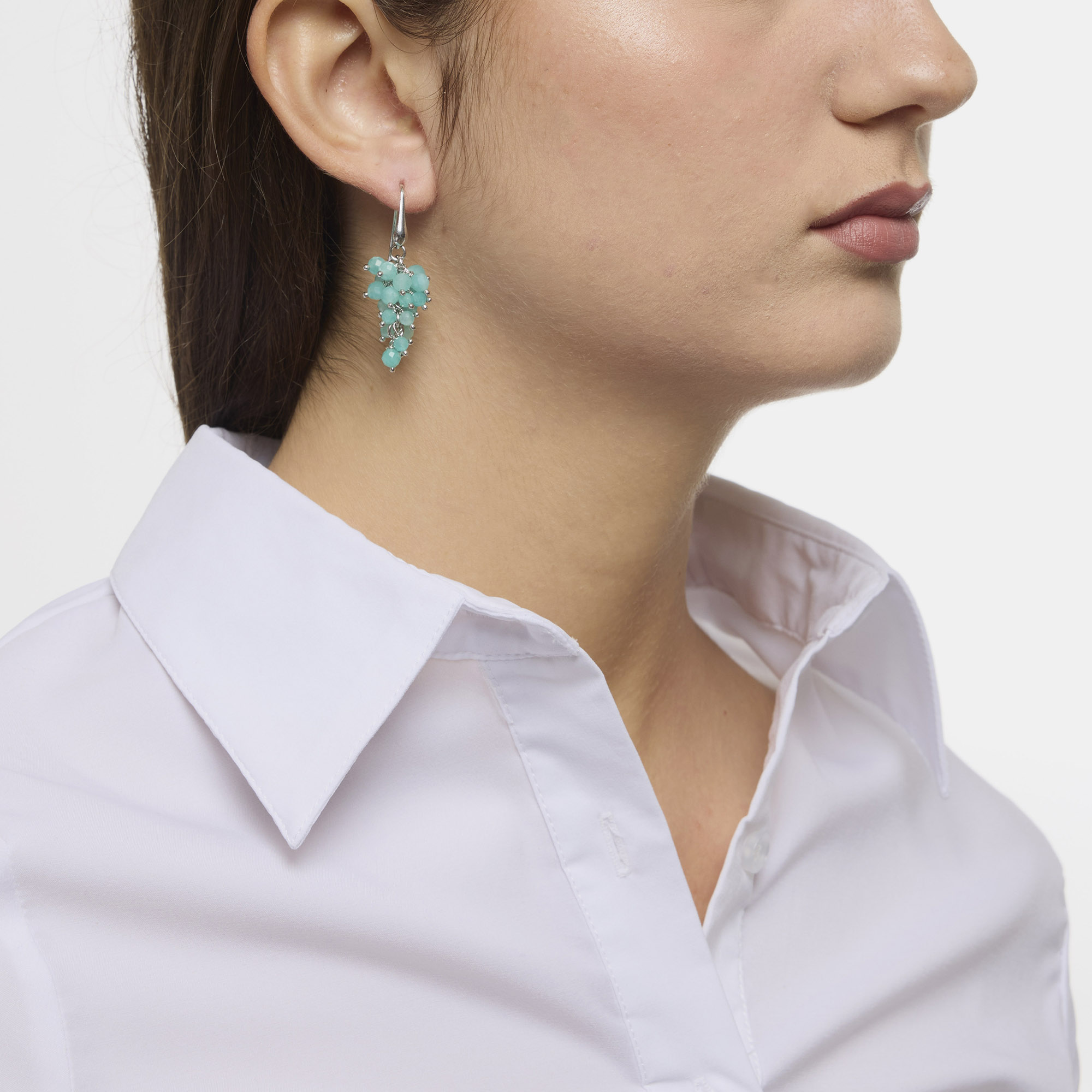 Orecchini in Amazzonite rilegata a grappolo, con amo in argento 925‰ rodiato. Realizzati in Italia.