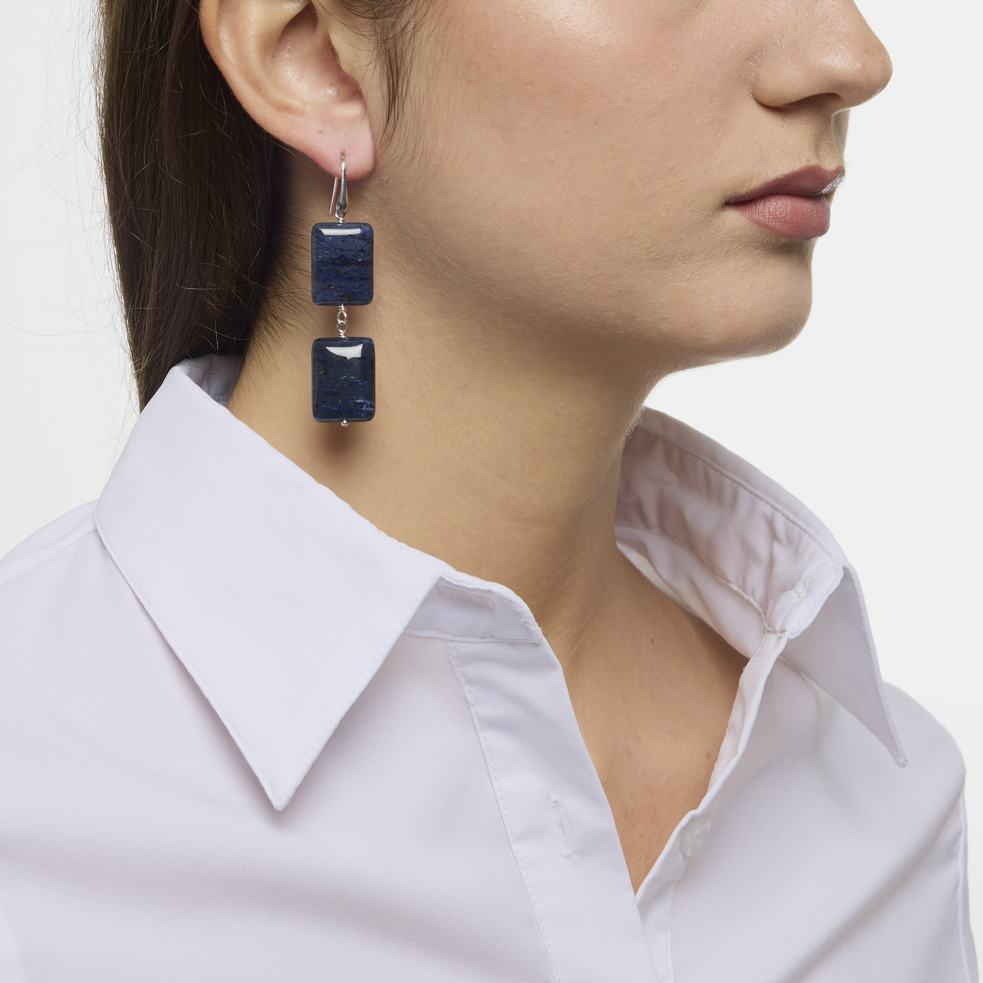 Orecchini a due pietre in Dumortierite a rettangolo liscio, con amo in Argento 925‰ rodiato, realizzati in Italia.
