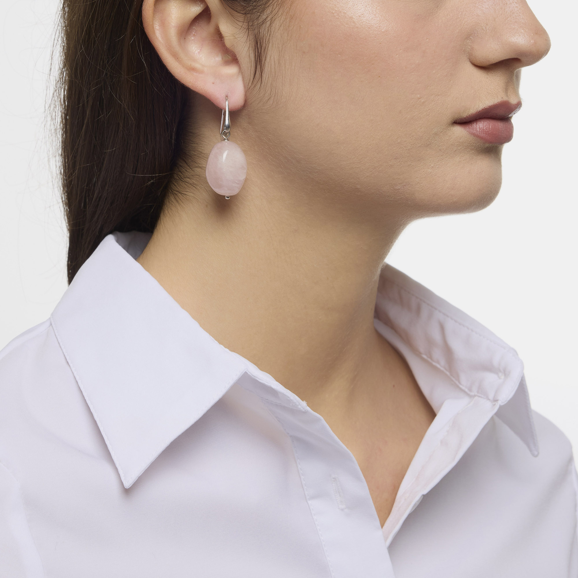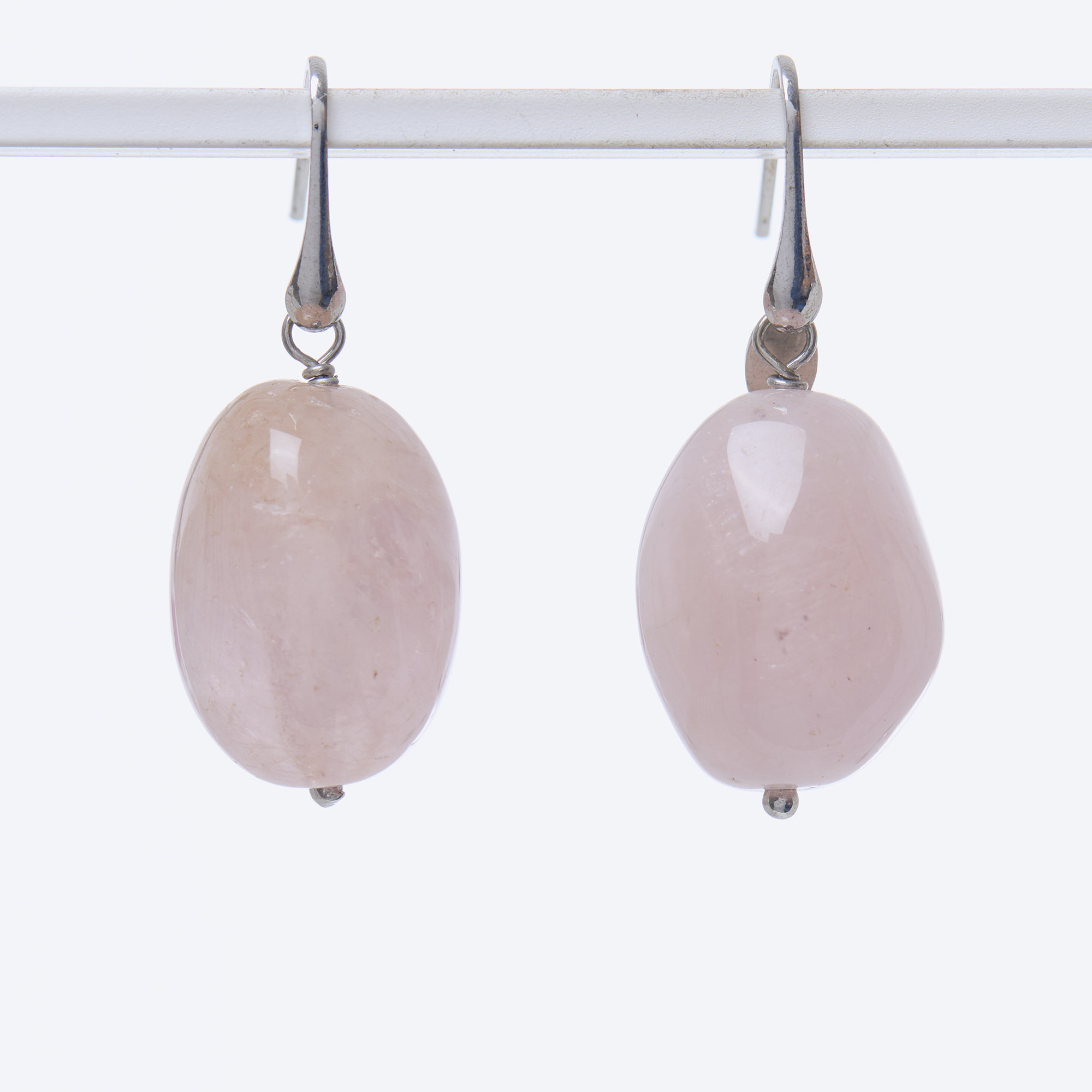 Orecchini in Morganite a sassetto liscio, con amo in Argento 925‰ rodiato. Realizzati in Italia.