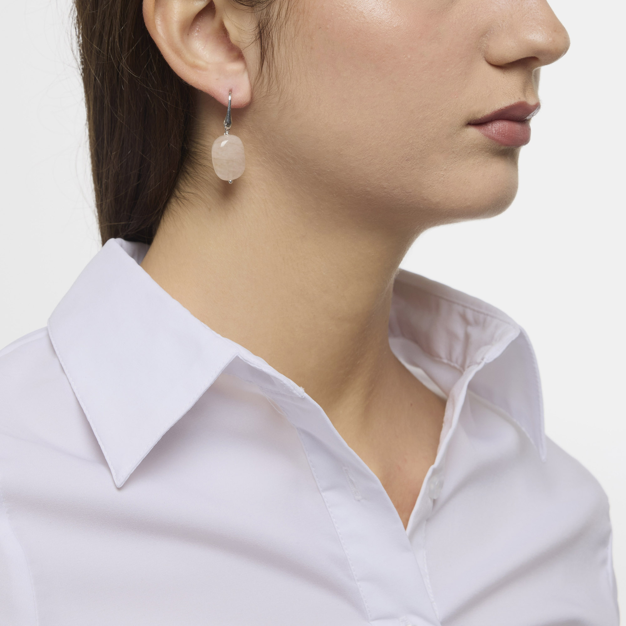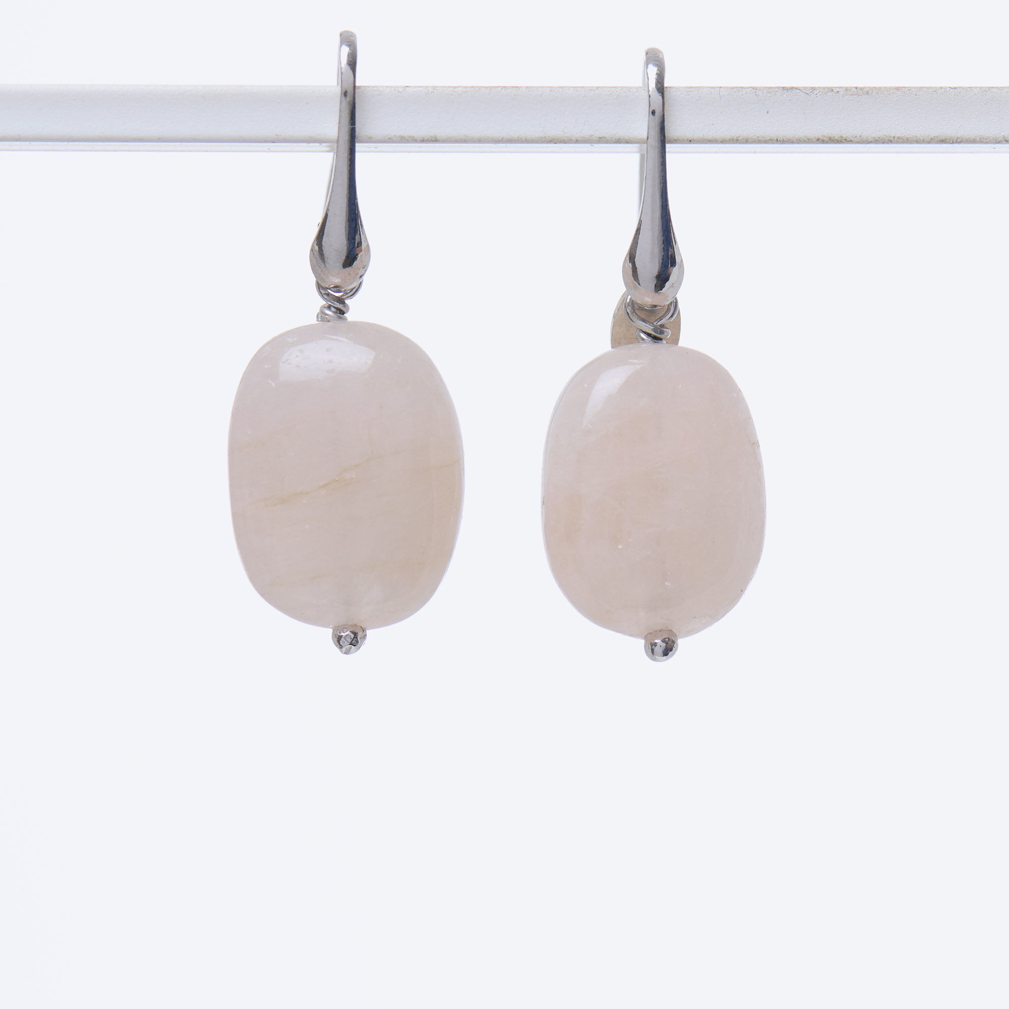 Orecchini in Morganite a sassetto liscio, con amo in Argento 925‰ rodiato. Realizzati in Italia.