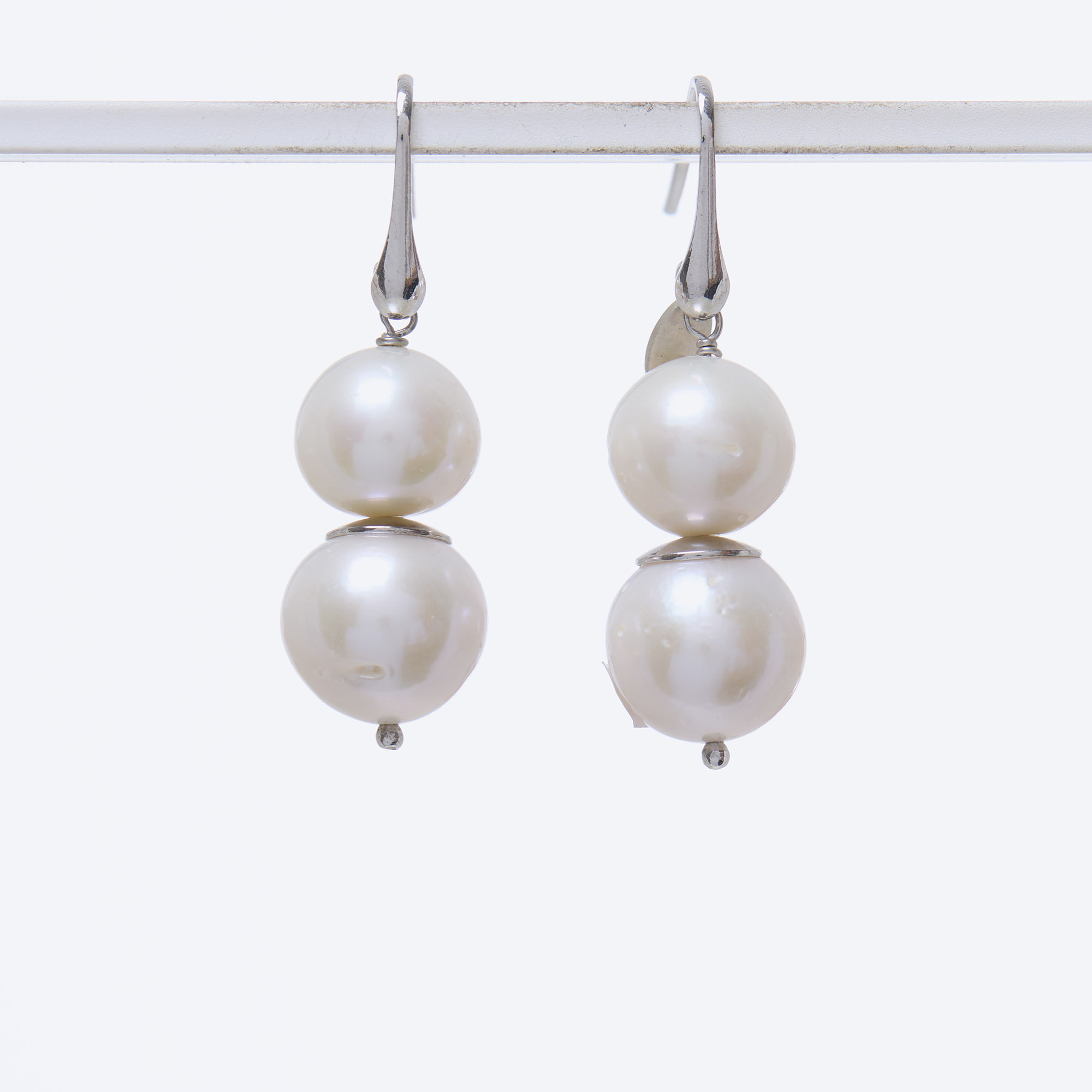 Orecchini in Perle di fiume, con coppetta ed amo in argento 925‰ rodiato. Realizzati in Italia.