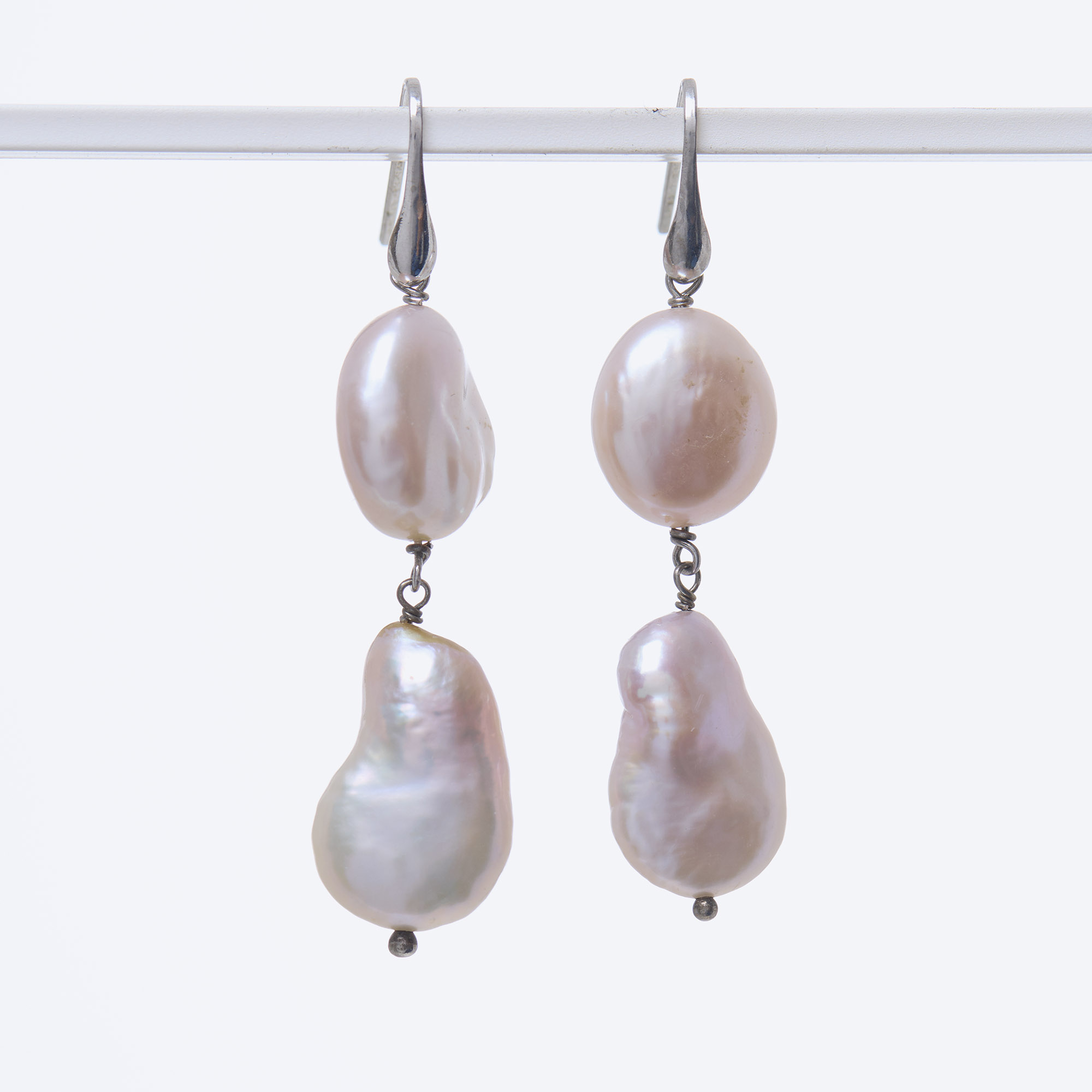 Orecchini in Perle d’acqua dolce piatte rosate, rilegati in Argento. Amo in argento 925‰ rodiato. Realizzati in Italia.
