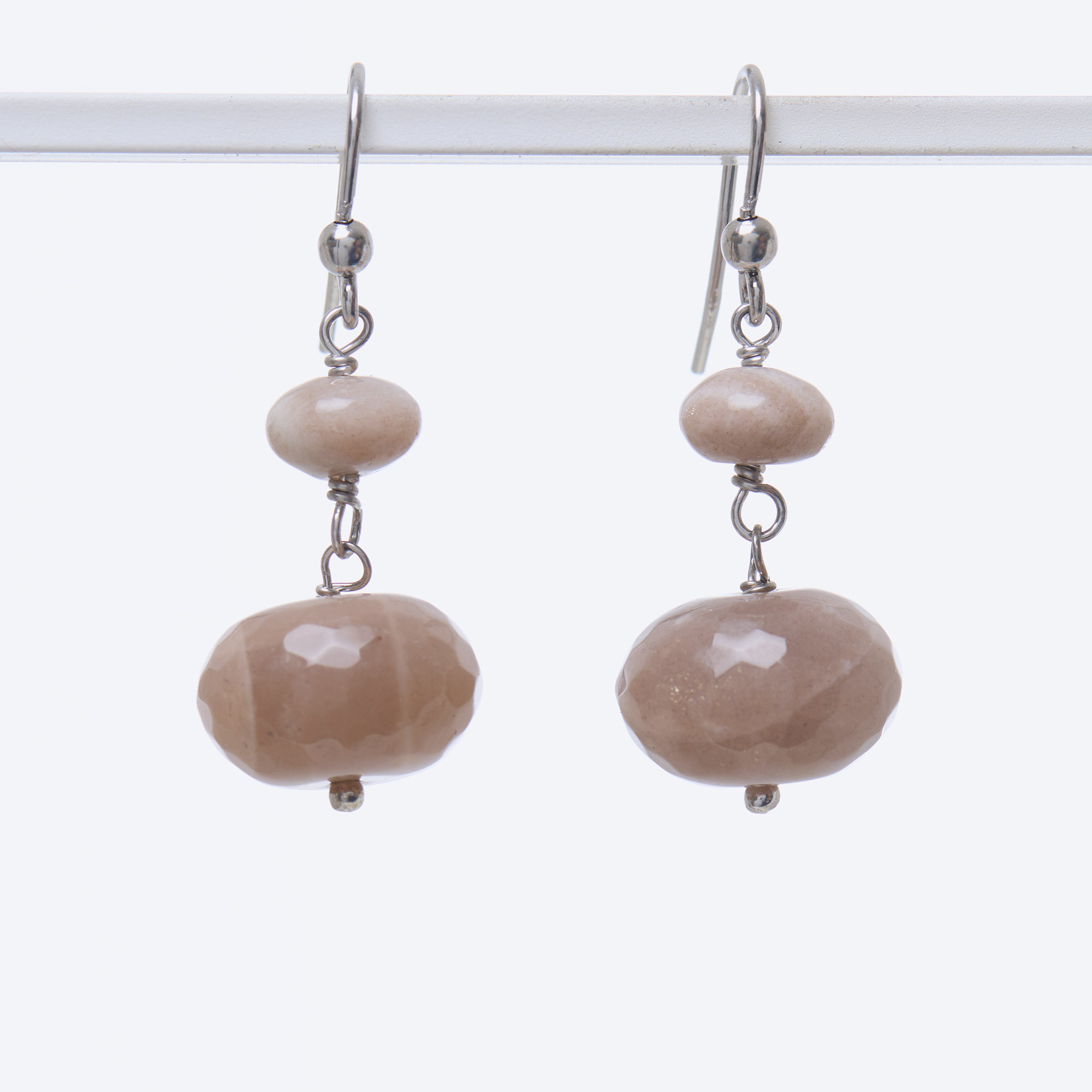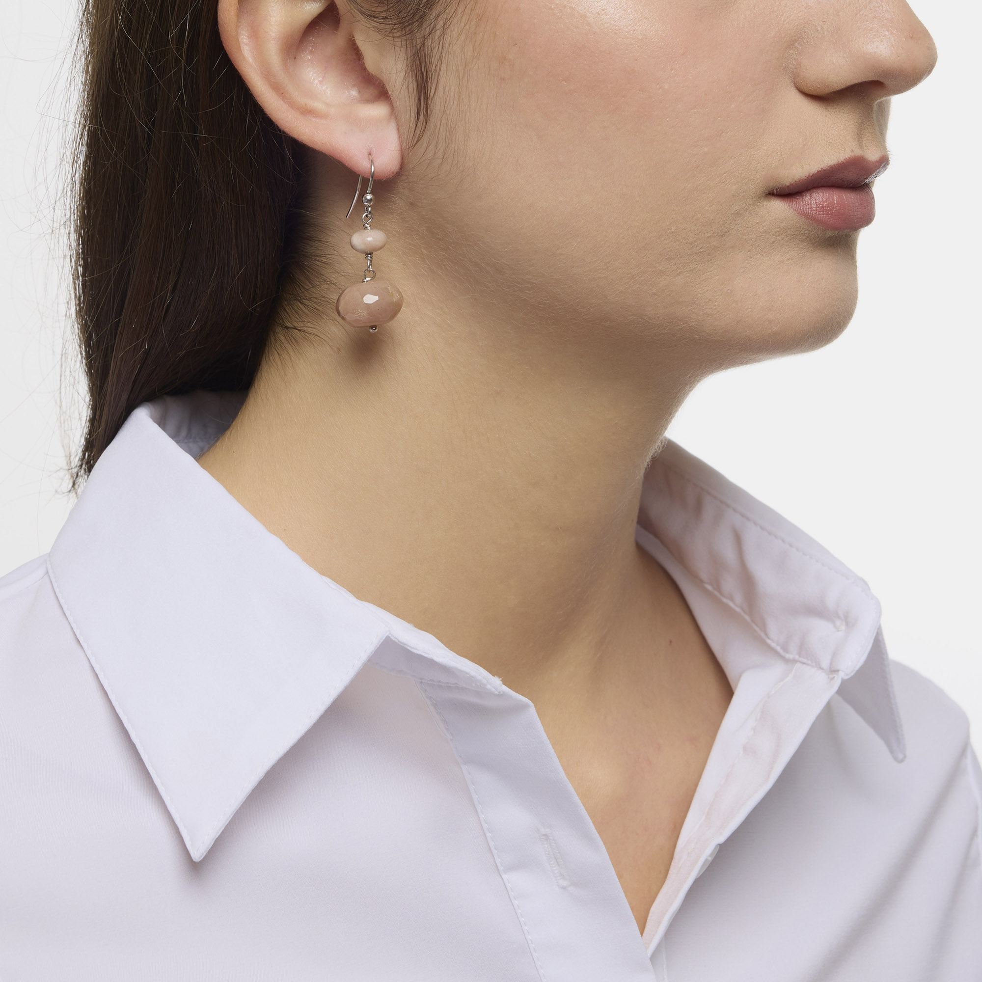 Orecchini in Pietra di Luna rosa a rondella liscia, rilegati e con amo in argento 925‰ rodiato. Realizzati in Italia.