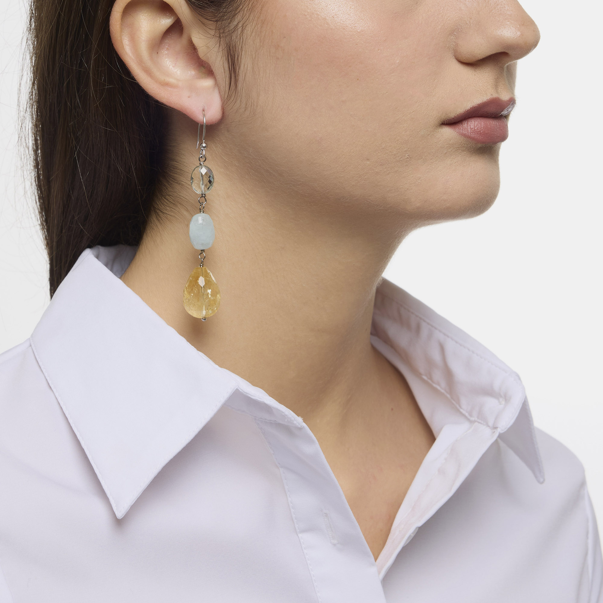 Orecchini in Prehnite e Quarzo Citrino a goccia e barilotto sfaccettato, con amo in Argento 925‰ rodiato. Realizzati in Italia.