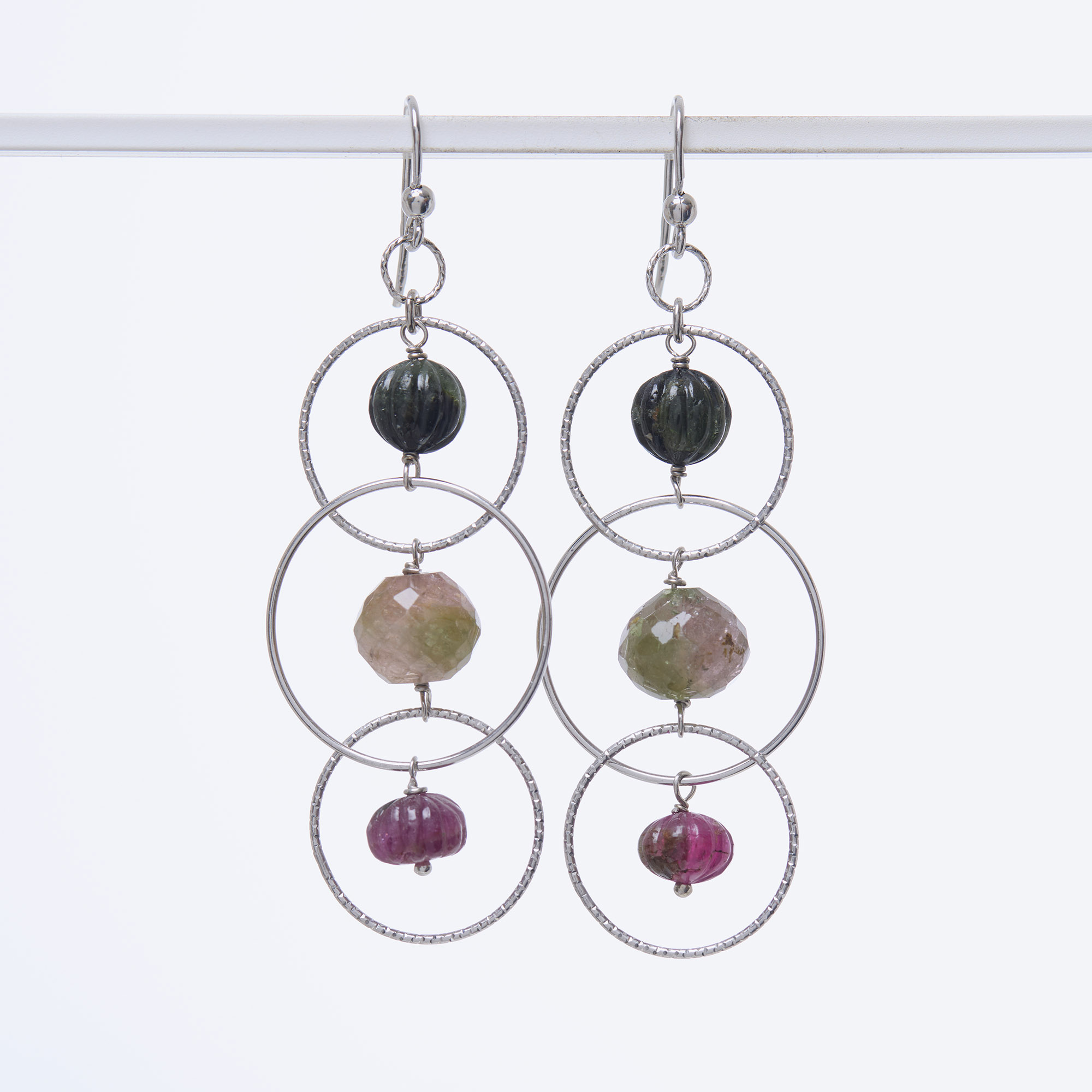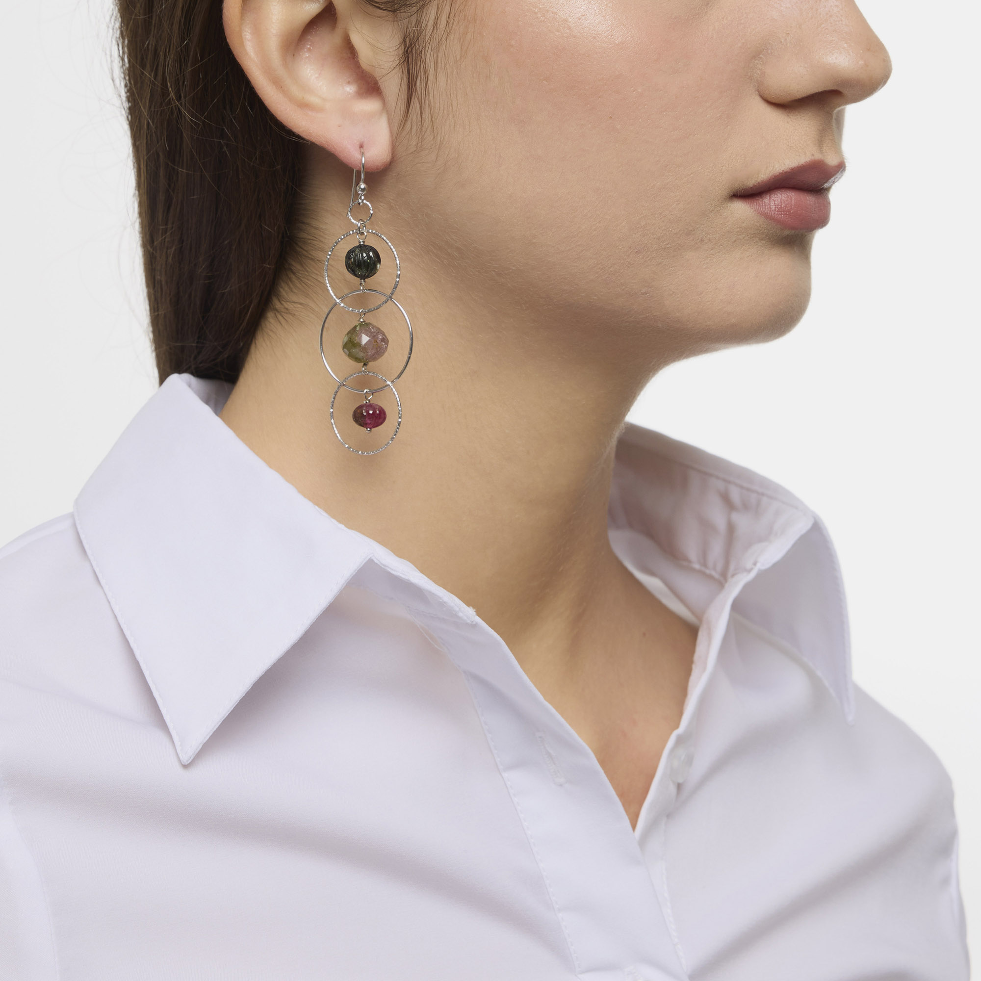 Orecchini in Tormalina policroma con Elementi a cerchio in ed amo in Argento 925‰ rodiato, realizzati in Italia.